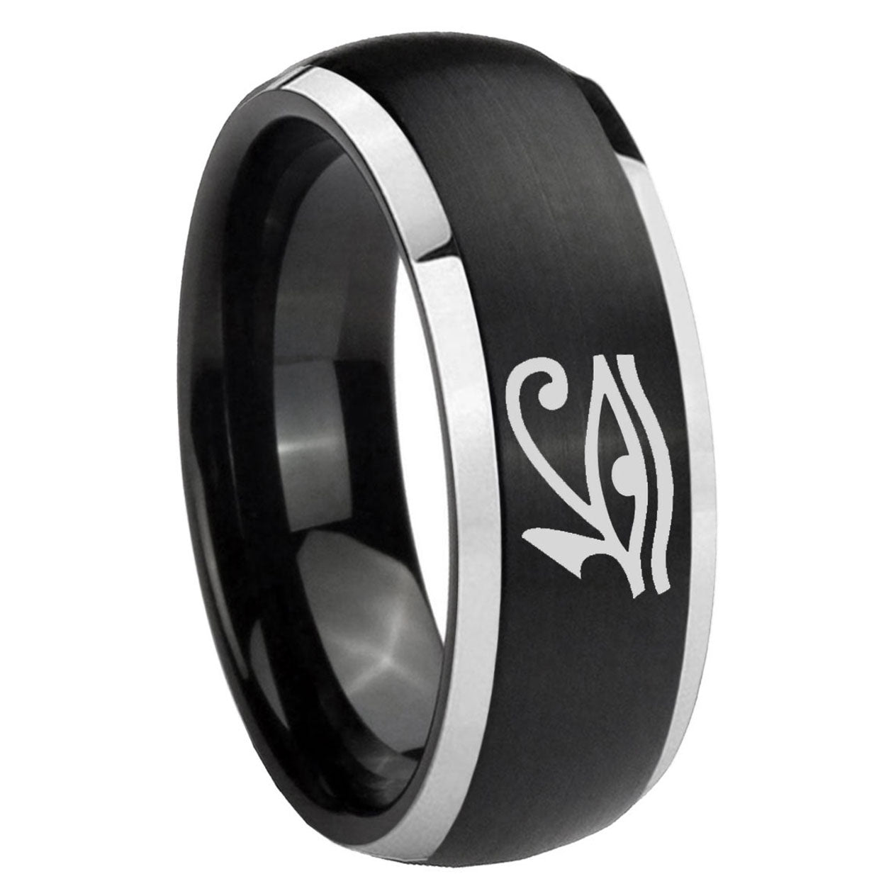 Intruding 5, 8mm Seeing Eye Dome Brushed Black 2 Tone Tungsten Carbide Mens Wedding Ring . Offer in both 5mm and 8mm band width brushed black plated finished from size 4 to 14