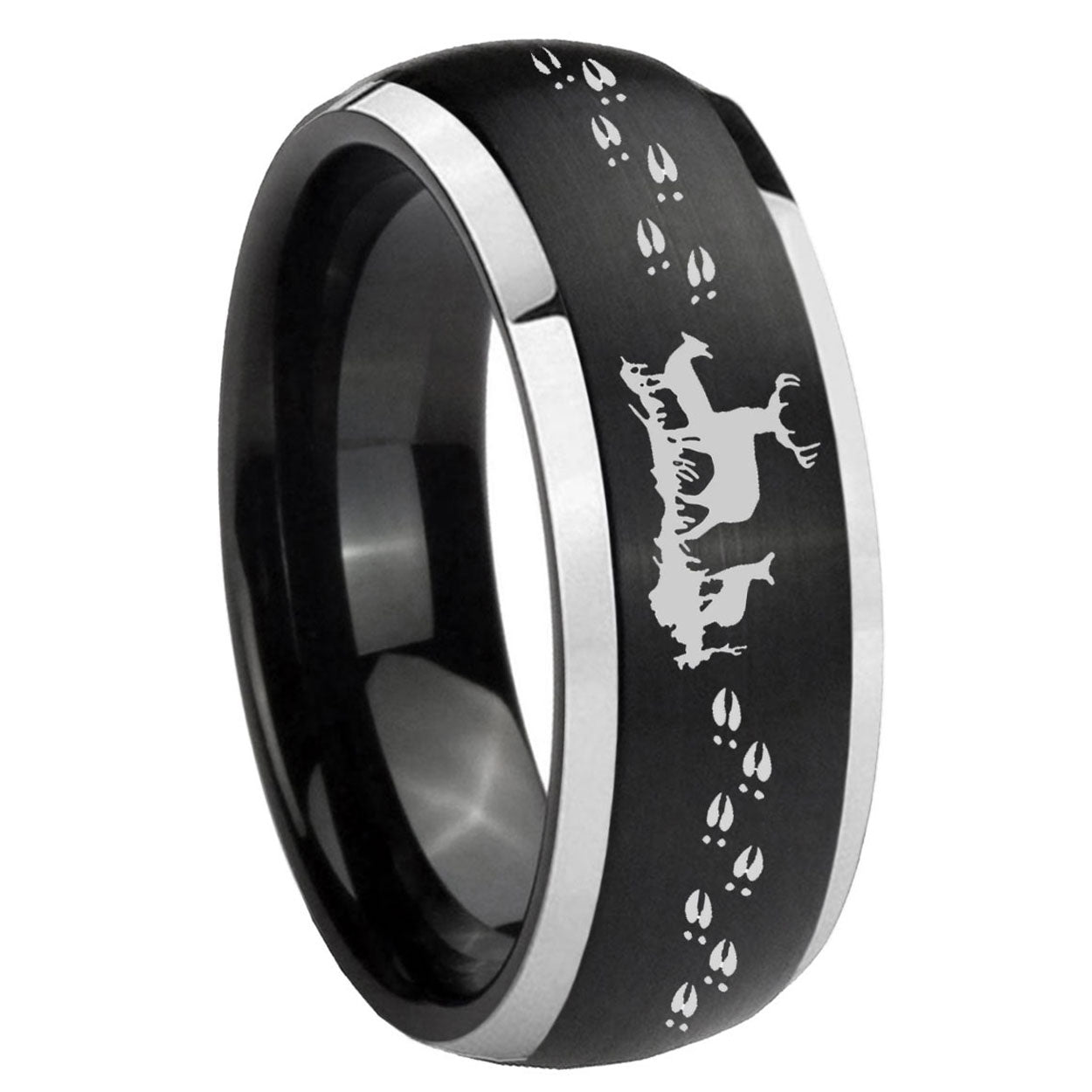 5, 8mm Deer Hunting Dome Brushed Black 2 Tone Tungsten Custom Mens Ring