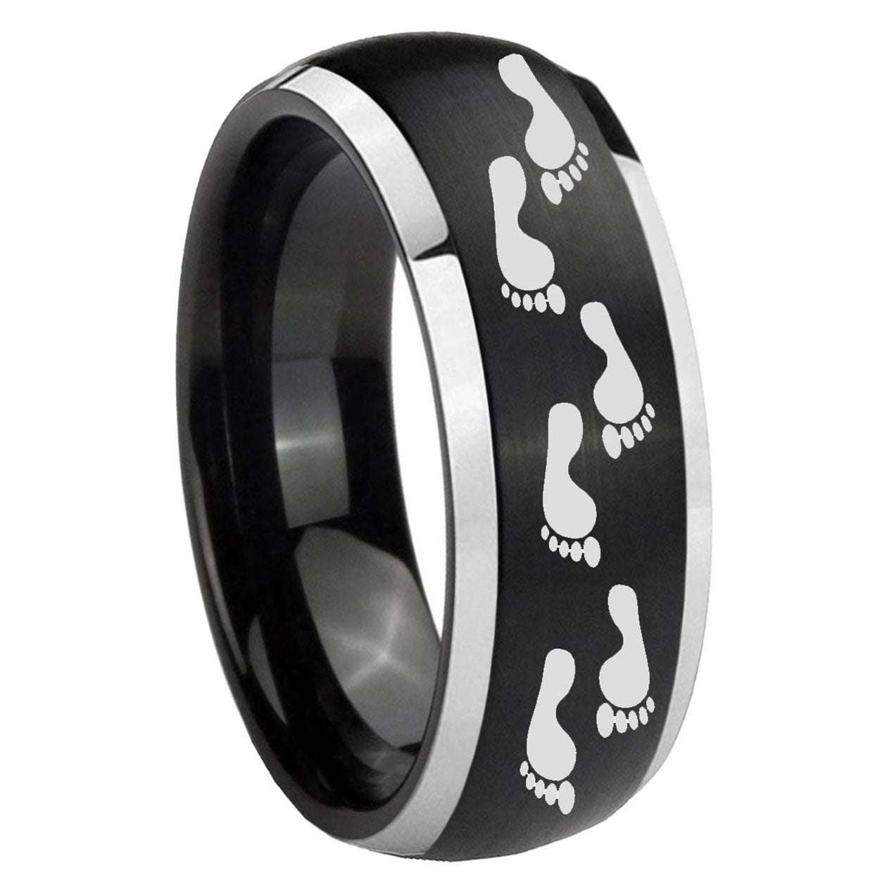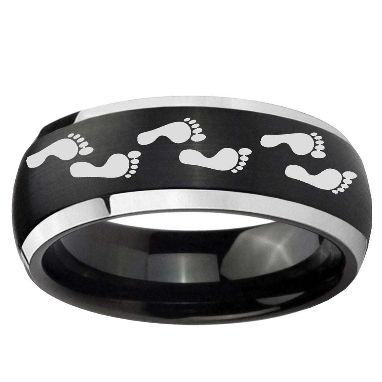 5, 8mm Foot Print Dome Brushed Black 2 Tone Tungsten Carbide Men's Bands Ring