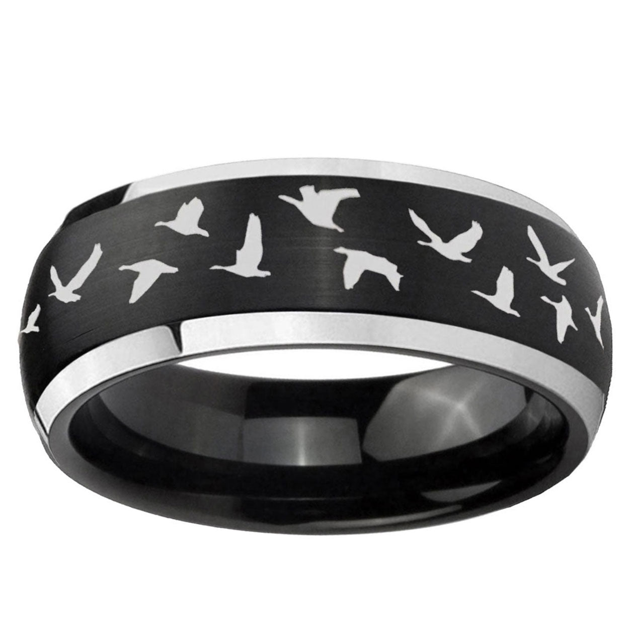 5, 8mm Flying Geese Hunting Dome Brushed Black 2 Tone Tungsten Personalized Ring