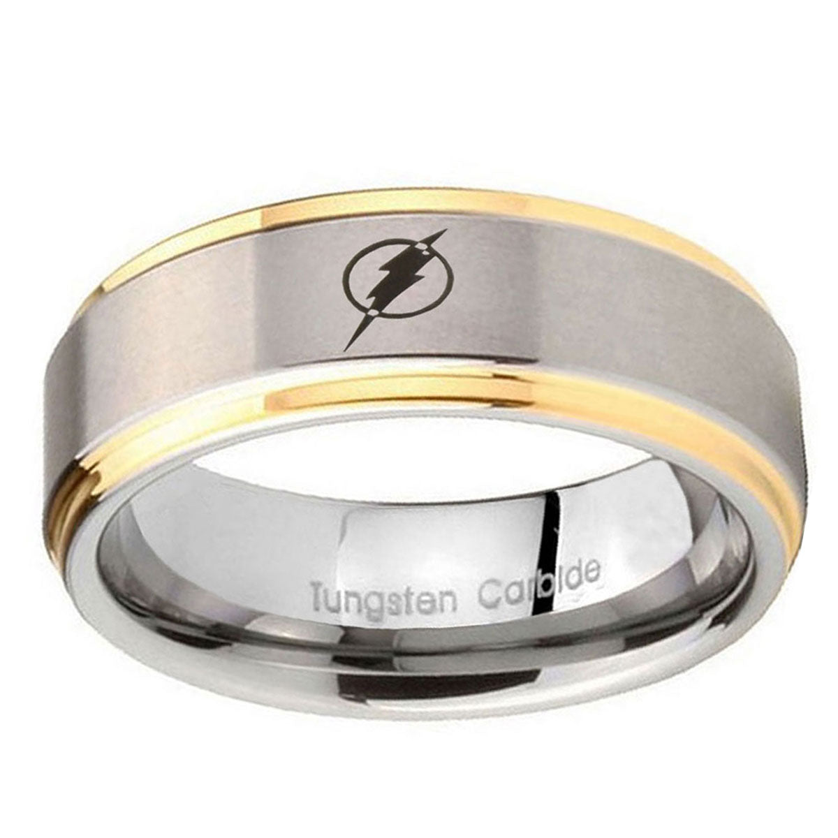 5, 8mm Flash Step Edge Gold and Gray Custom Engraved Ring