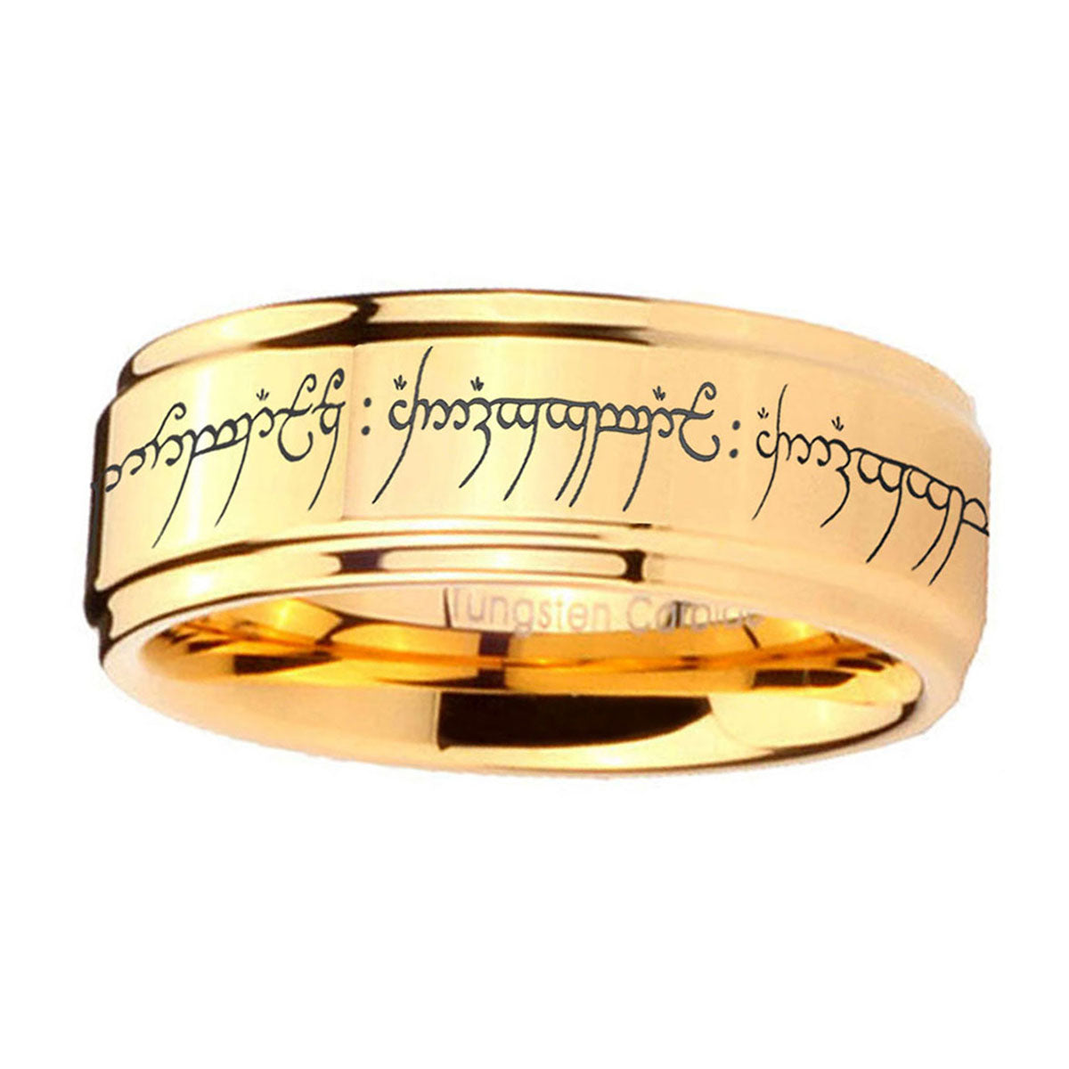 Introuding 5, 8mm Lord Of The Rings Step Edge Gold Tungsten Engagement Rings For Him . Offer in both 5mm and 8mm band width 18k gold plated finished from size 4 to 14