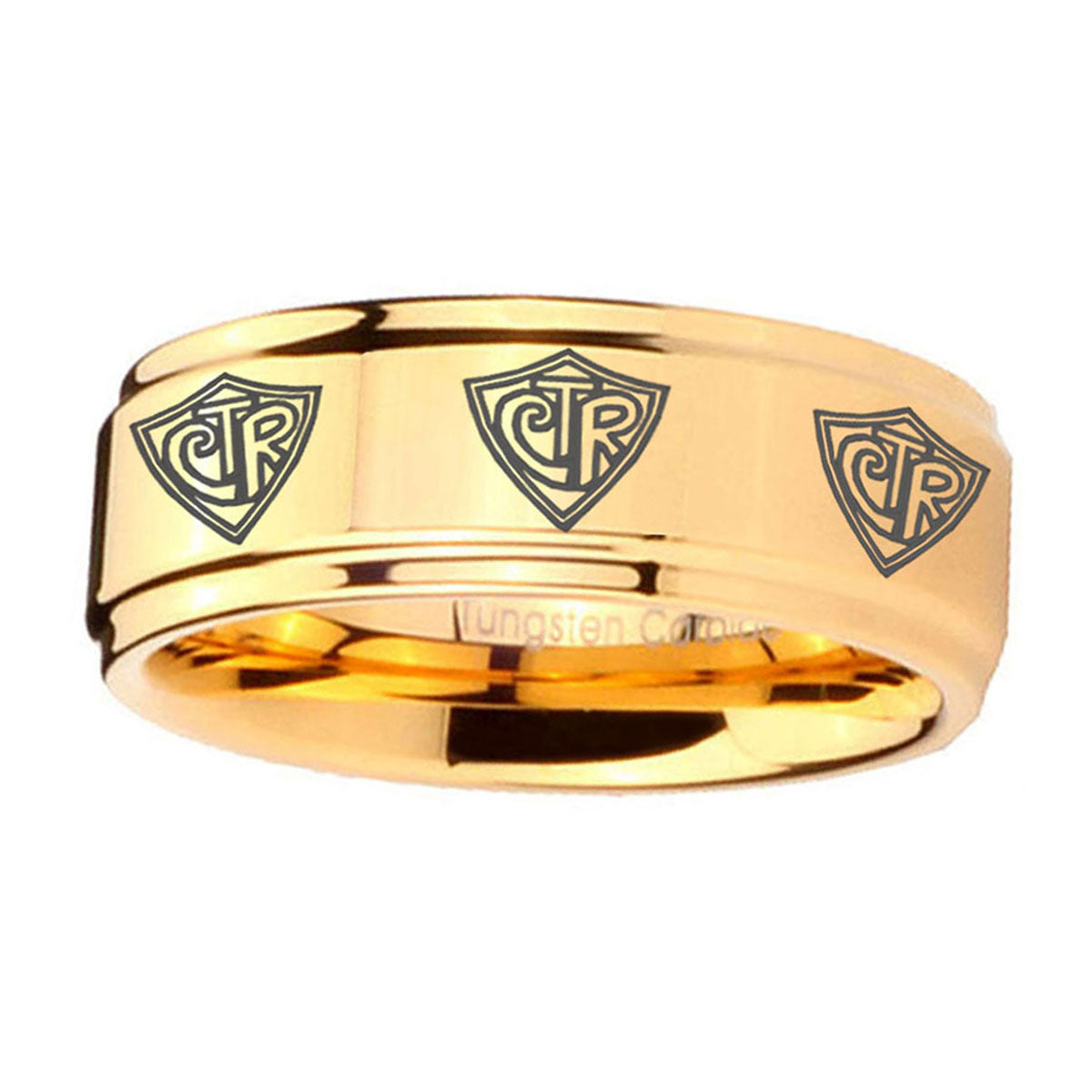 Introuding 5, 8mm Multiple CTR Step Edge Gold Tungsten Engagement Rings For Him . Offer in both 5mm and 8mm band width 18k gold plated finished from size 4 to 14