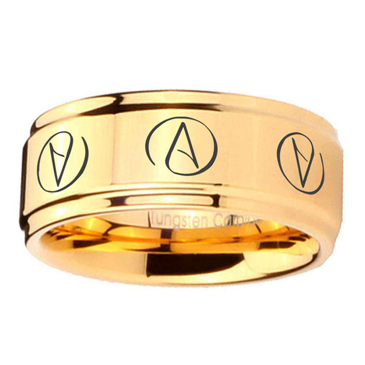 Introuding 5, 8mm Atheist Step Edge Gold Mens Work Wedding Rings . Offer in both 5mm and 8mm band width 18k gold plated finished from size 4 to 14