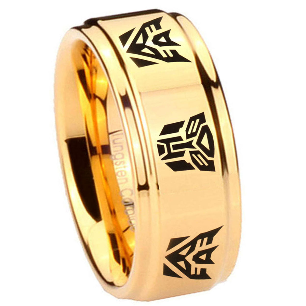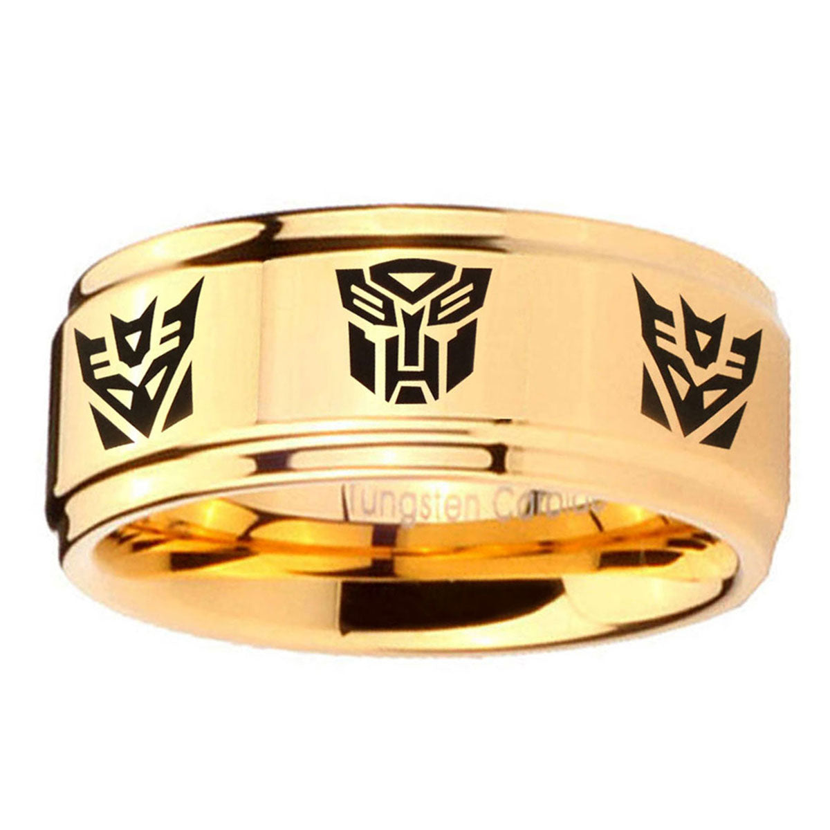 Introuding 5, 8mm Transformers Autobot Decepticon Step Edge Gold Mens Wide Band Rings . Offer in both 5mm and 8mm band width 18k gold plated finished from size 4 to 14