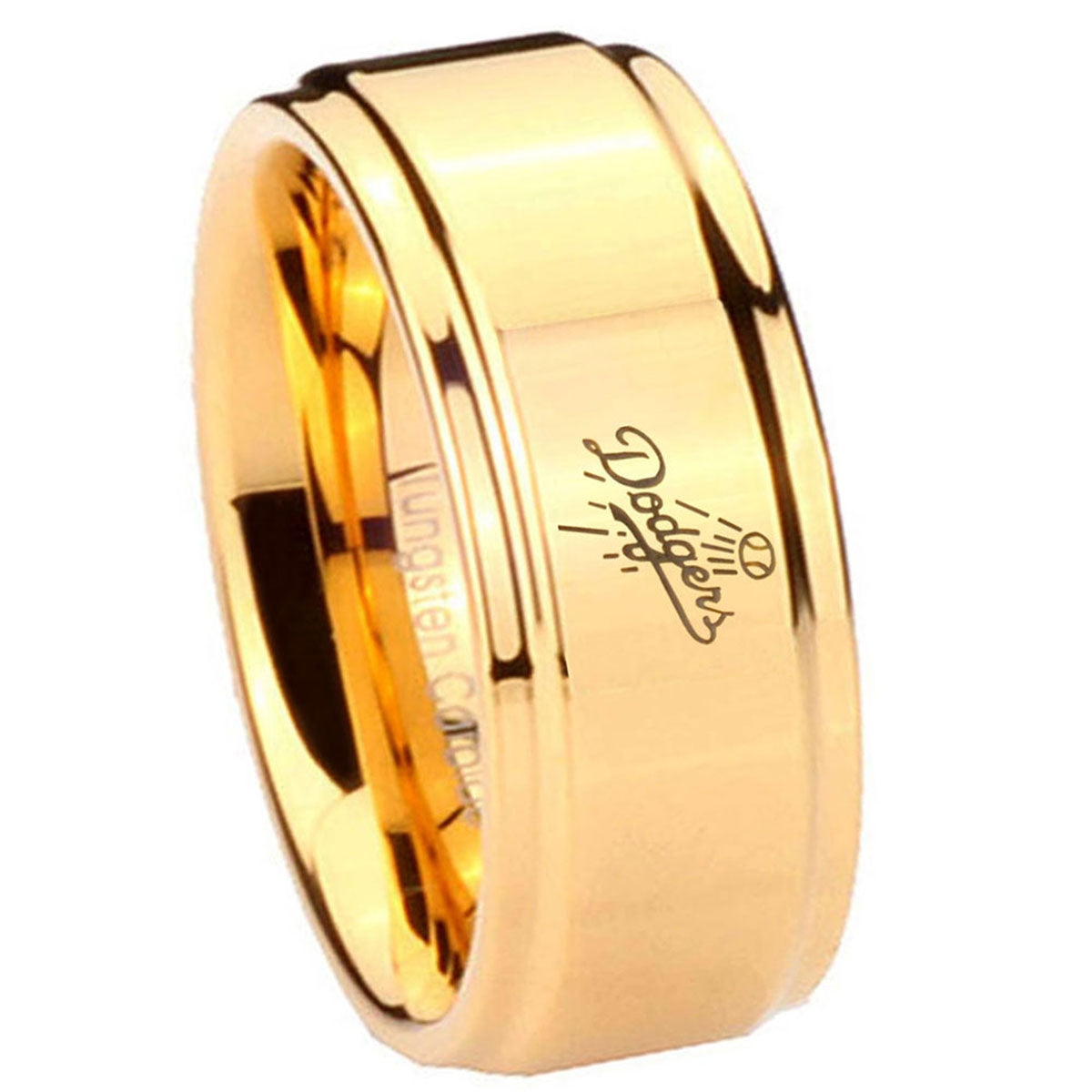Introuding 5, 8mm LA Dogers MLB Baseball Step Edge Gold Mens Work Wedding Rings . Offer in both 5mm and 8mm band width 18k gold plated finished from size 4 to 14