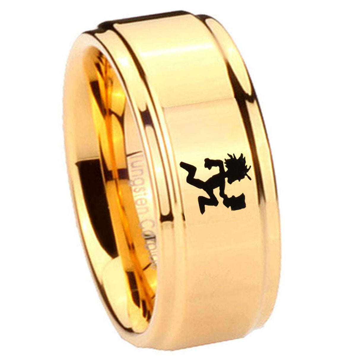 Introuding 5, 8mm Hatchet Man Step Edge Gold Mens Ring Tungsten . Offer in both 5mm and 8mm band width 18k gold plated finished from size 4 to 14