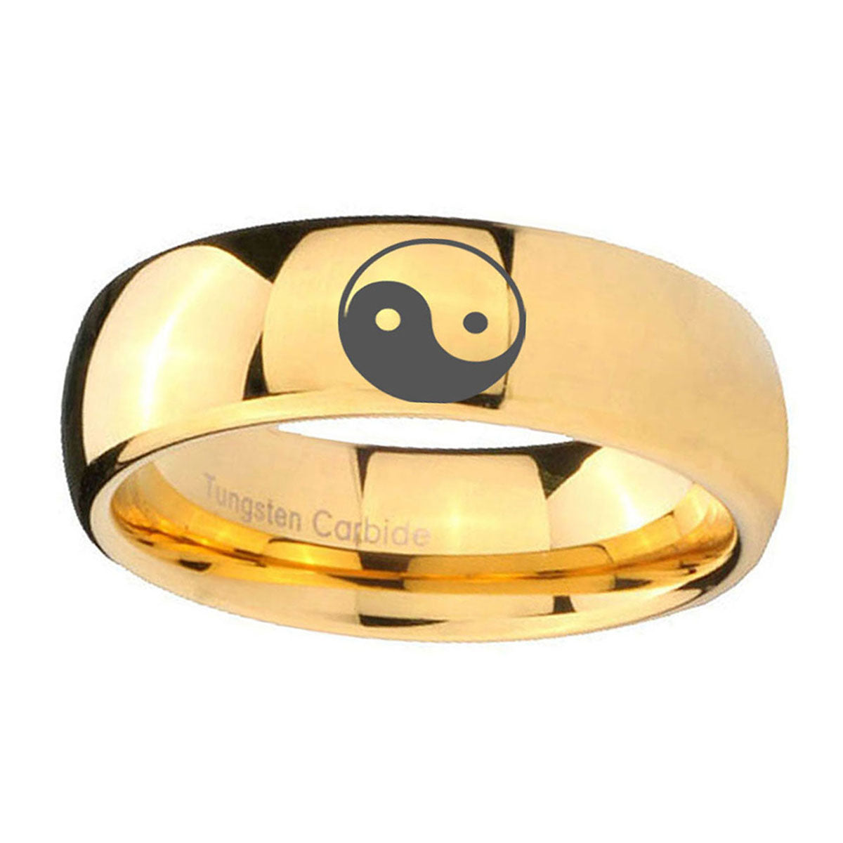 5, 8mm Yin Yang Dome Gold Tungsten Carbide Wedding Bands Ring