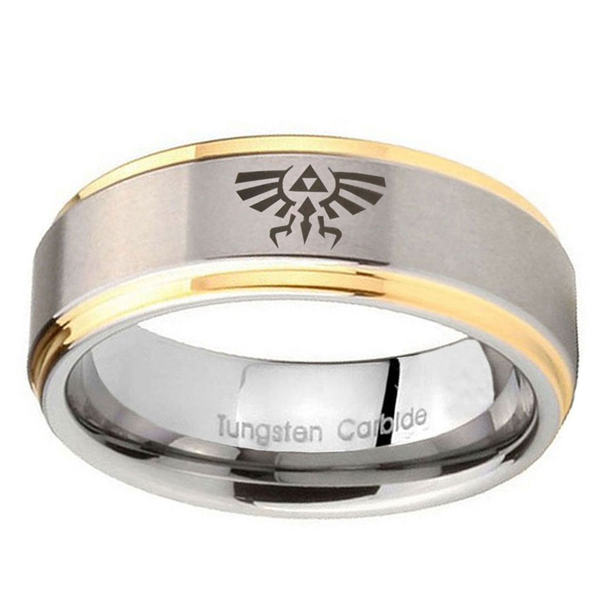 Introuding 5, 8mm Zelda Skyward Sword Step Edges Gold 2 Tone Tungsten Mens Wedding Ring . Offer in both 5mm and 8mm band width grey and gold 2 tone fnished from size 4 to 14