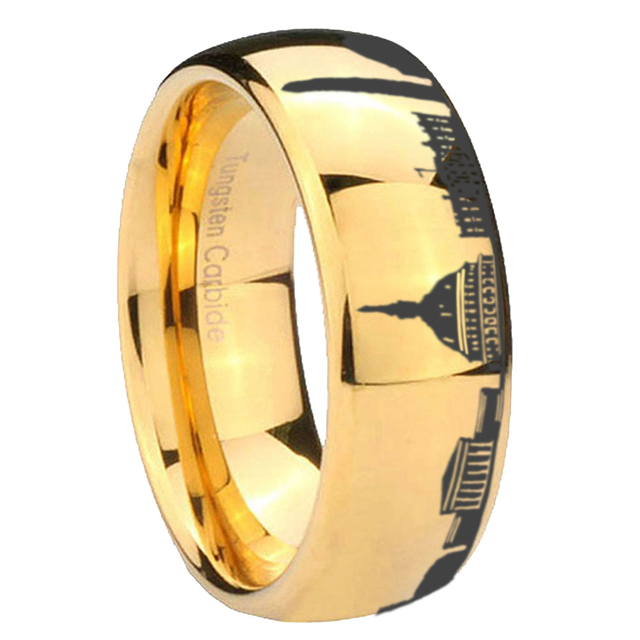 Intruding 8mm DC Washington City Dome Polish Gold Tungsten Wedding Band Mens . Offer in 8mm band width gold plated finished from size 7 to 14