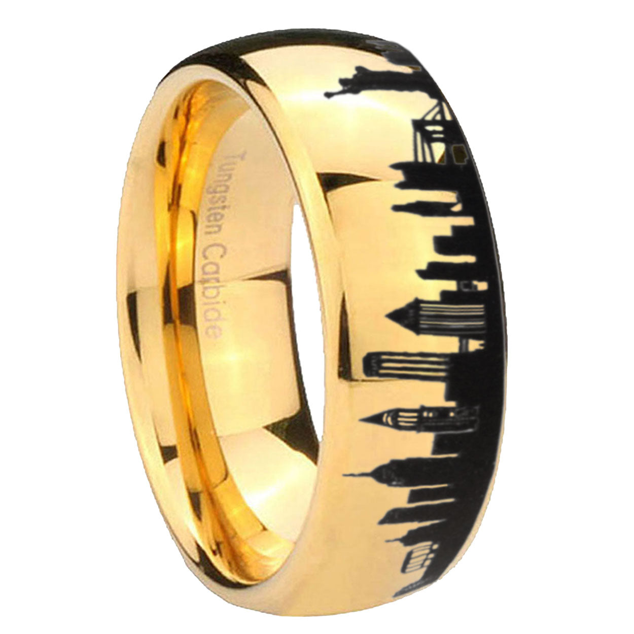 Intruding 8mm NY New York City Dome Polish Gold Tungsten Wedding Band Mens . Offer in 8mm band width gold plated finished from size 7 to 14