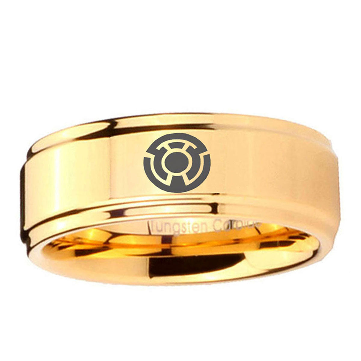 Intruding 5, 8mm Yellow Lantern Step Edge Gold Metals For Men's Rings . Offer in both 5mm and 8mm band width 18k gold plated finished from size 4 to 14