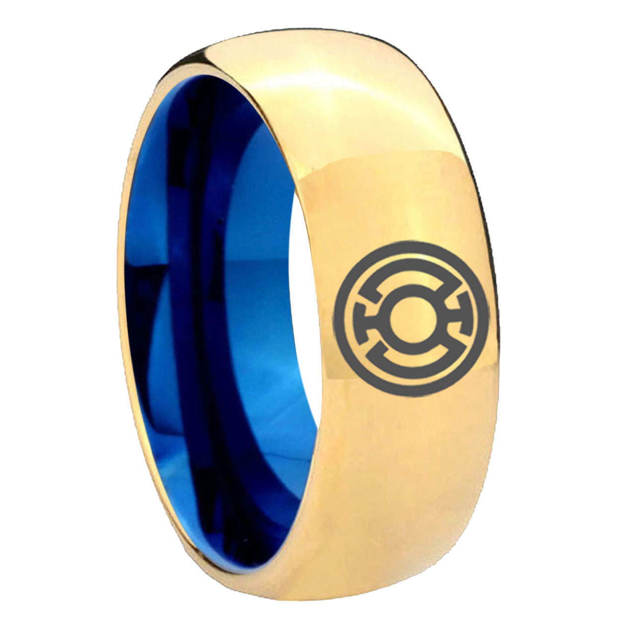 Intruding 8mm Blue Lantern Dome Blue Gold Mens Ring Wedding . Offer in 8mm band width blue and gold plated finished from size 7 to 14