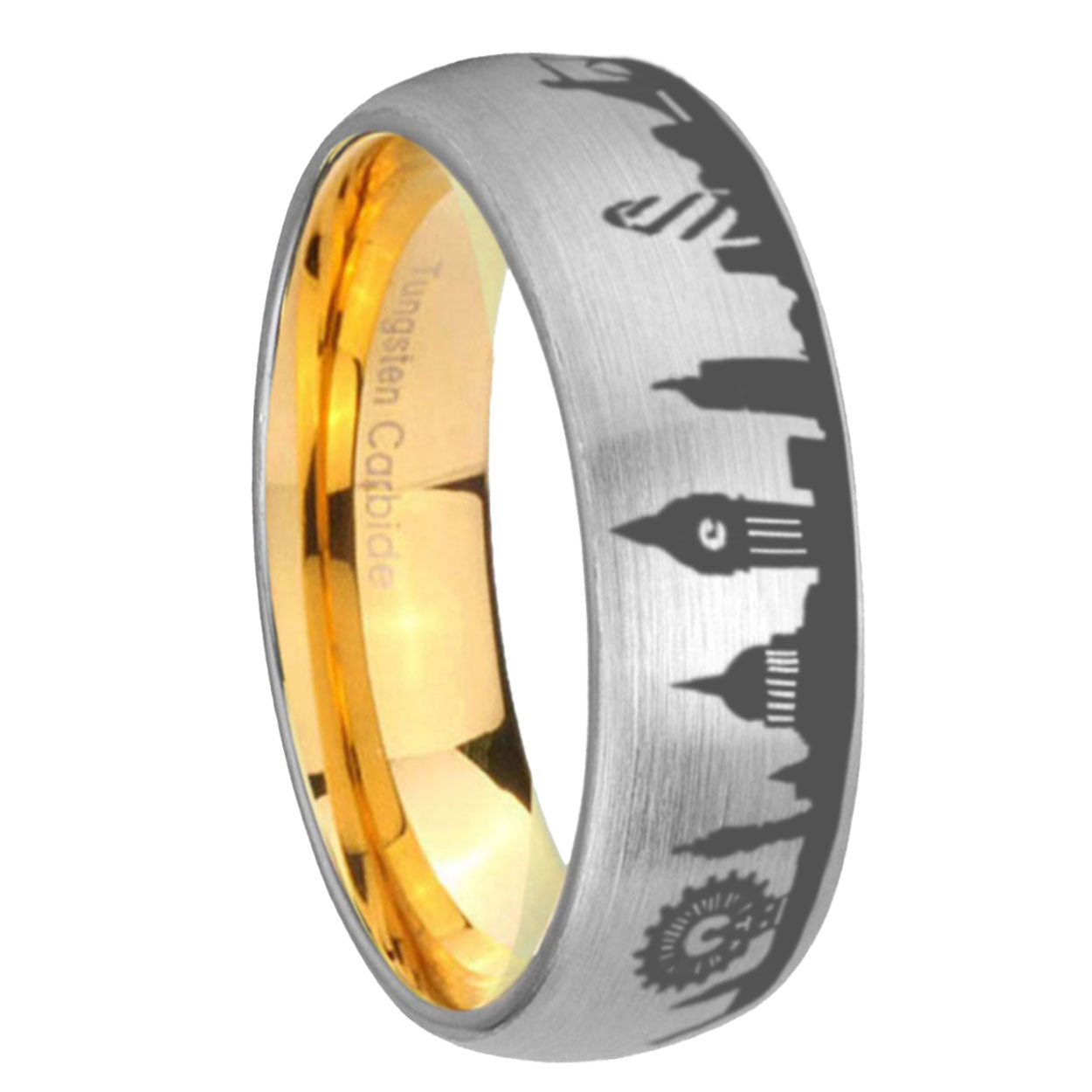 8mm UK London City Dome Brushed Gray Tungsten Gold Plated Inside Engraved Ring