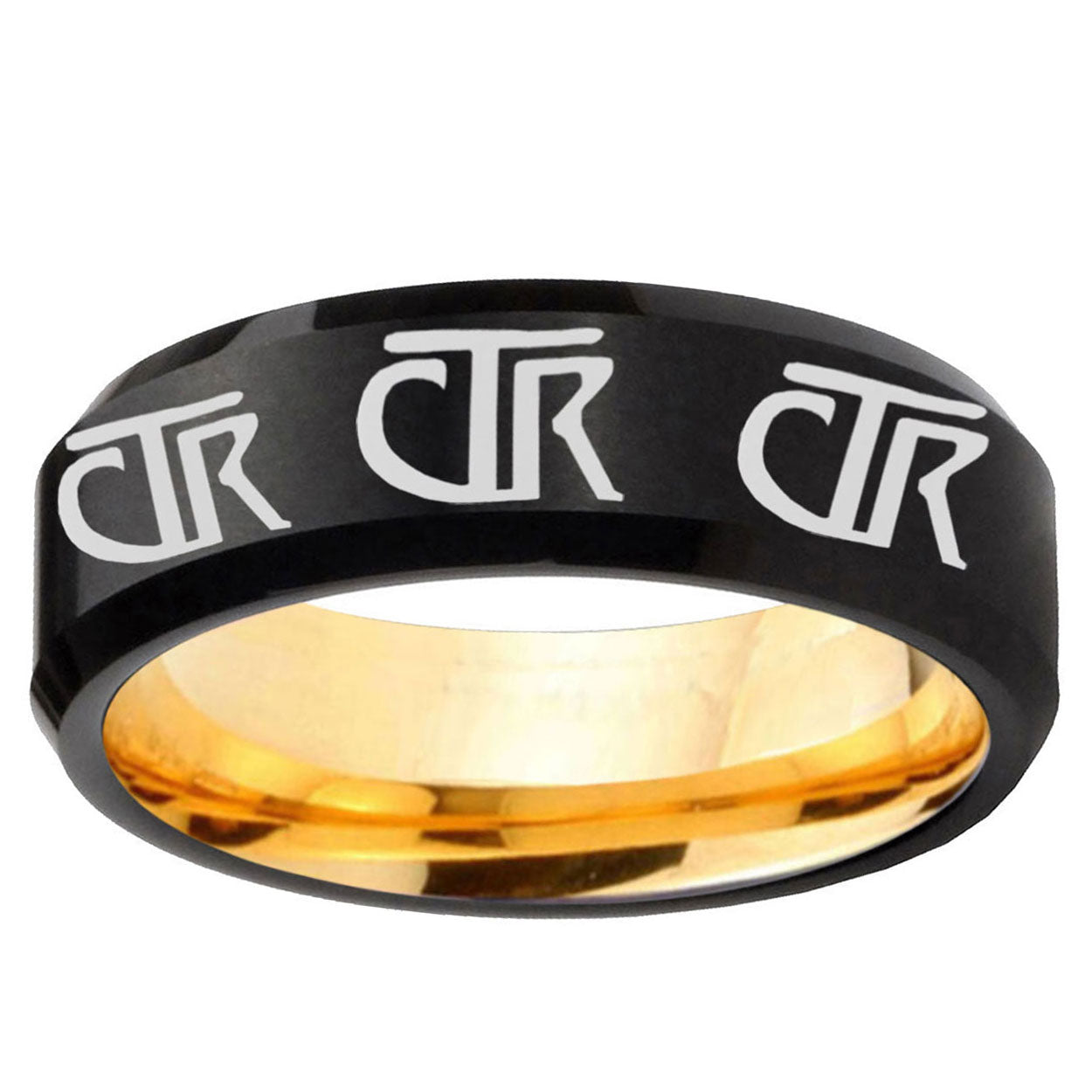 8mm Multiple CTR Beveled Edge Black And Gold Tungsten Carbide Men's Promise Ring