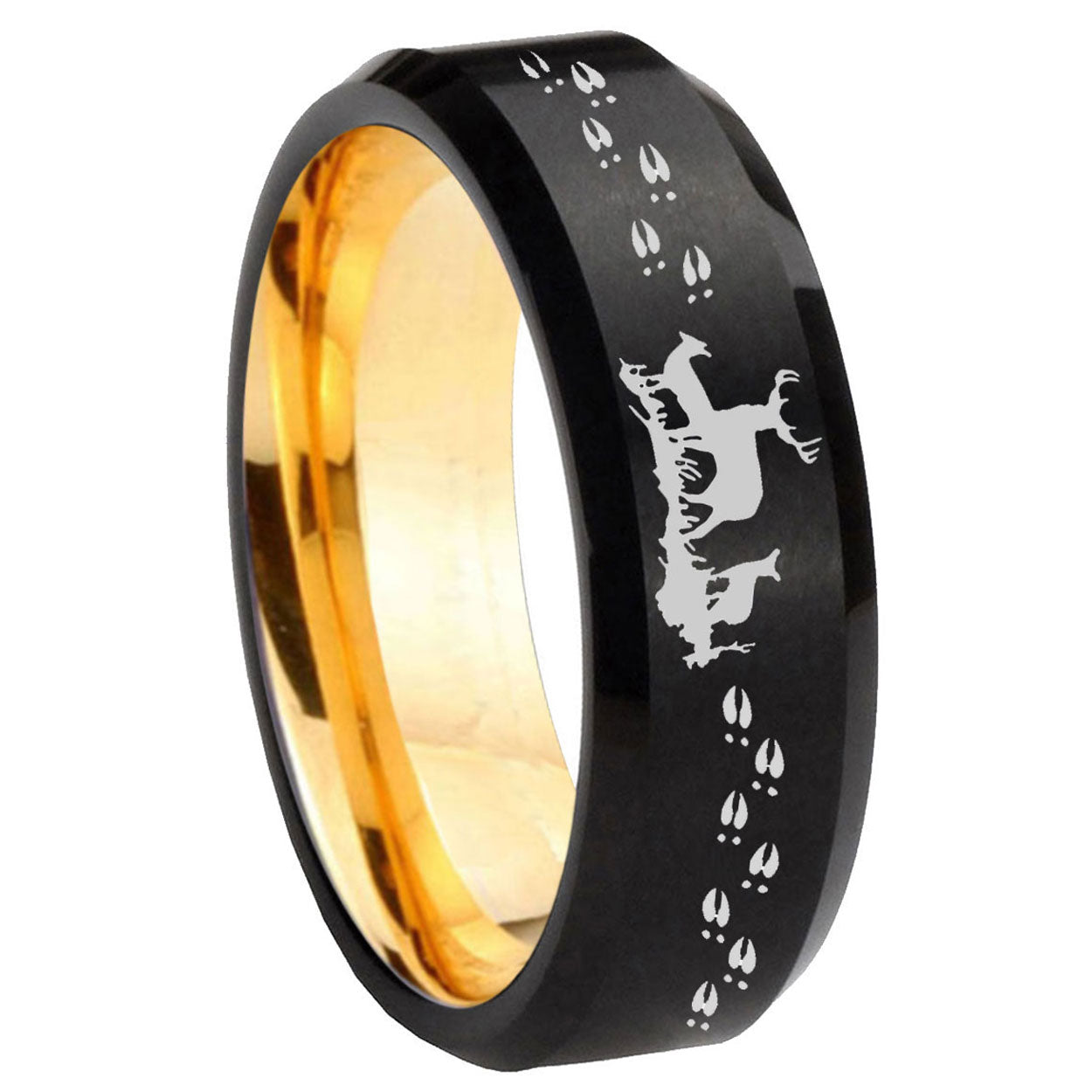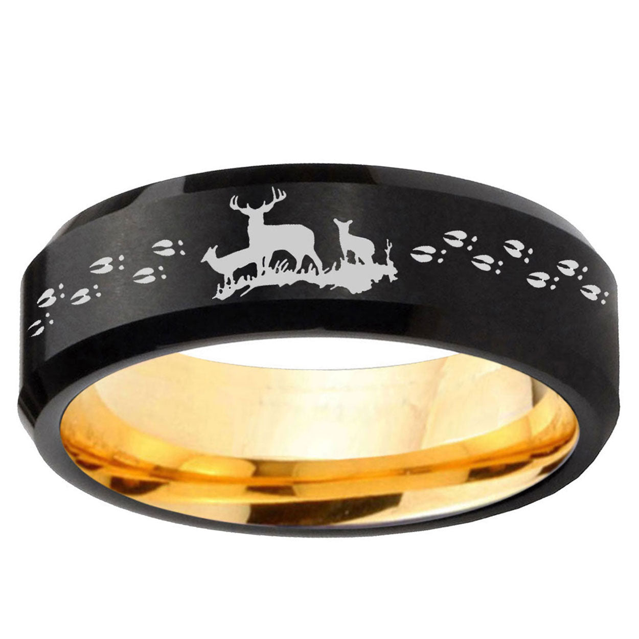8mm Deer Hunting Beveled Edge Black And Gold Tungsten Custom Rings
