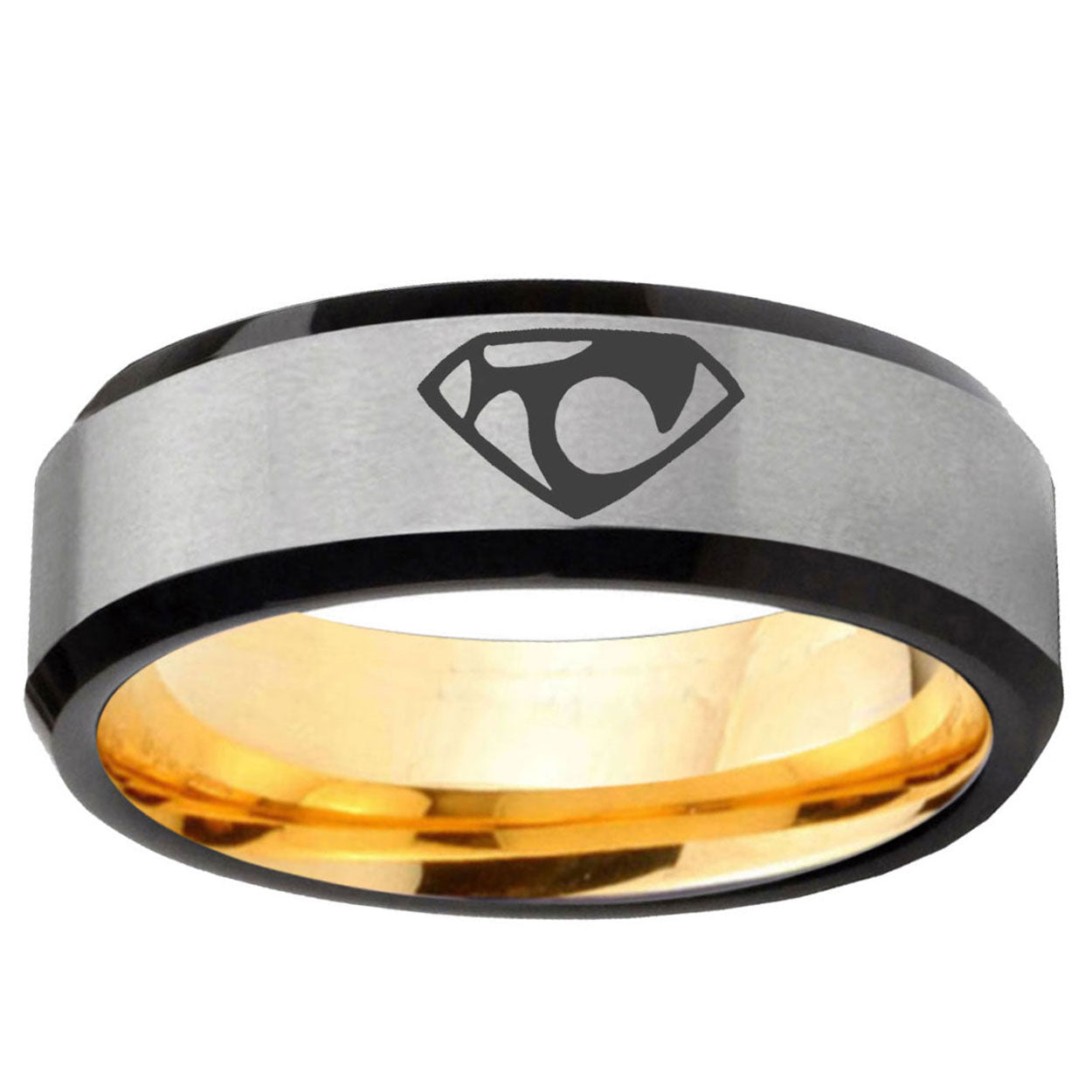 Intruding 8mm House of Van Beveled Edge Gray And Gold Tungsten Wedding Engagement Ring . Offer in men wedding band in 8mm band width gray and gold plated finished from size 7 to 14