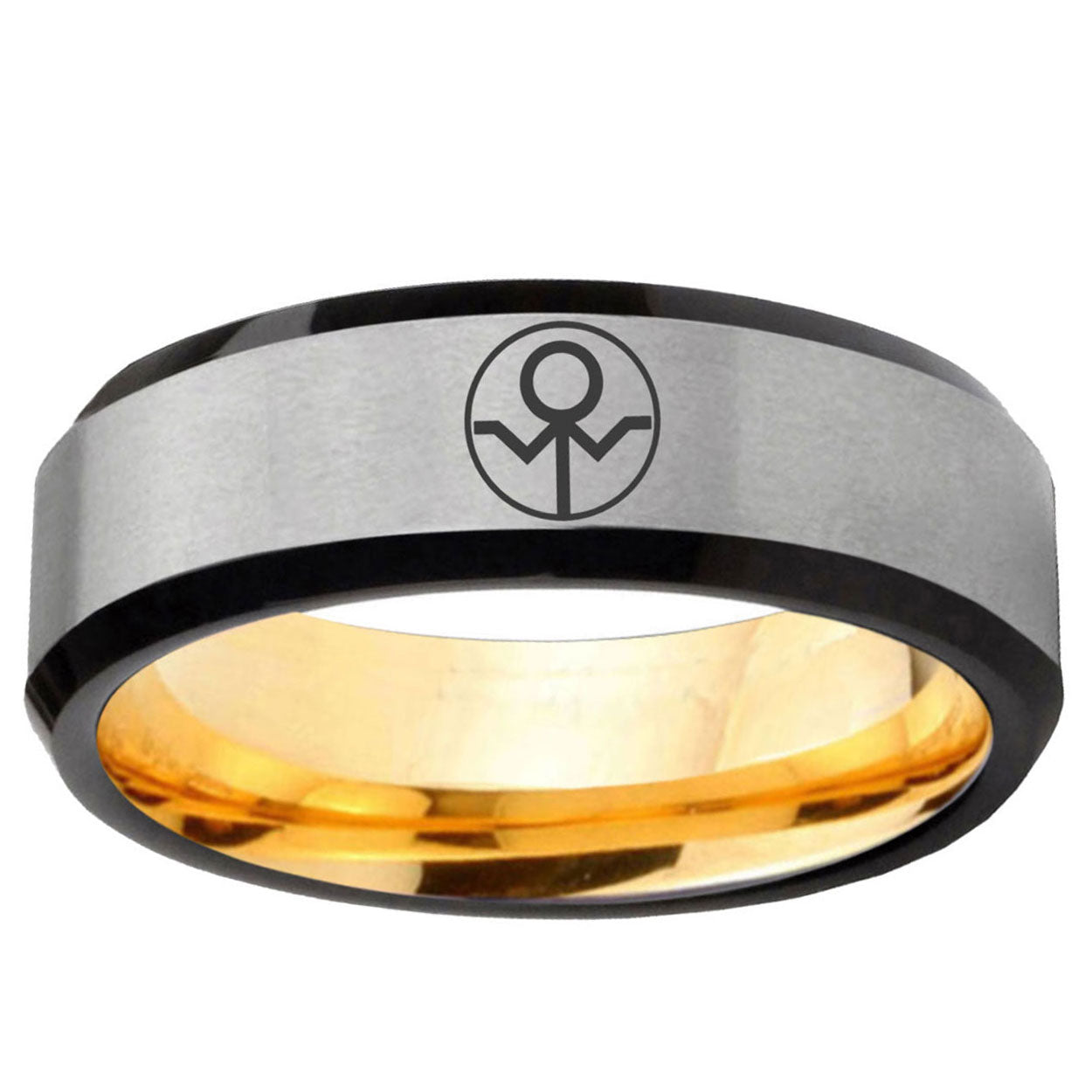8mm Gray Lantern Beveled Edge Gold Silver Steel Rings