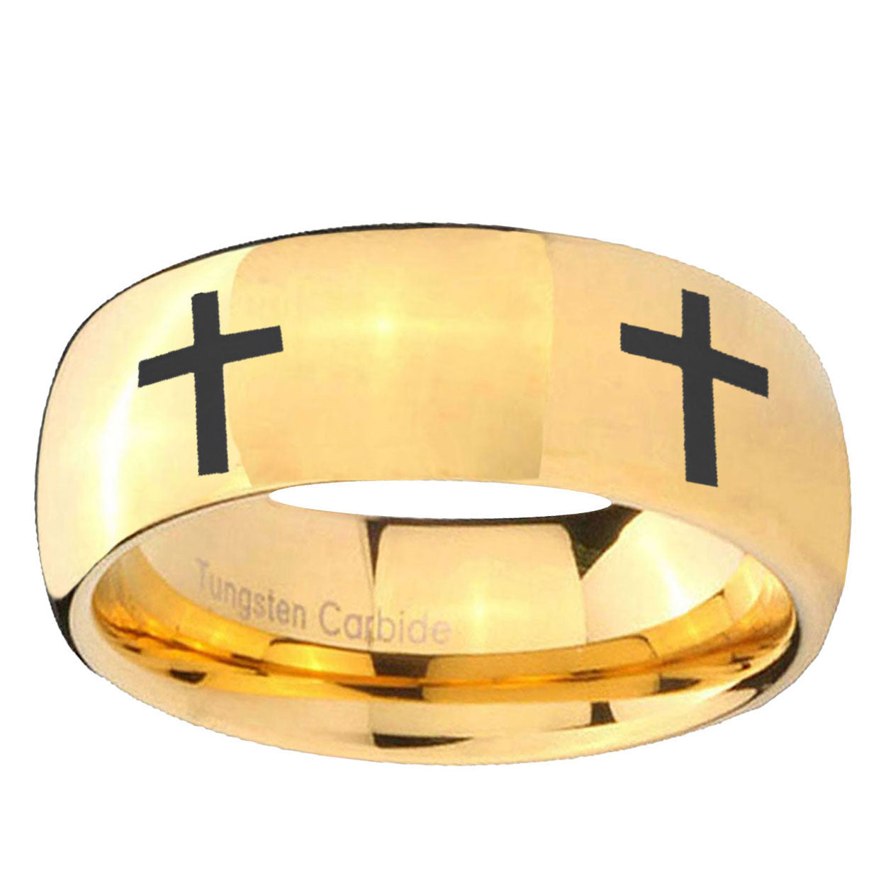 5, 8mm Crosses Dome Gold Tungsten Carbide Men's Promise Rings
