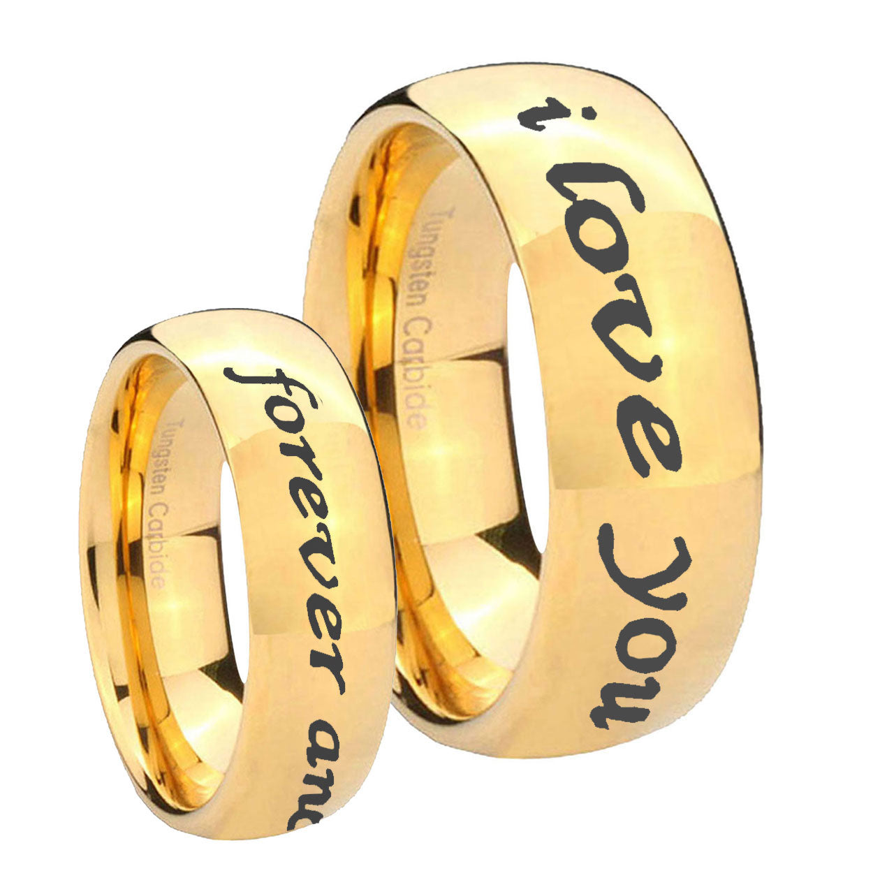 10mm I Love You Forever and ever Dome Gold Tungsten Carbide Mens Promise Ring
