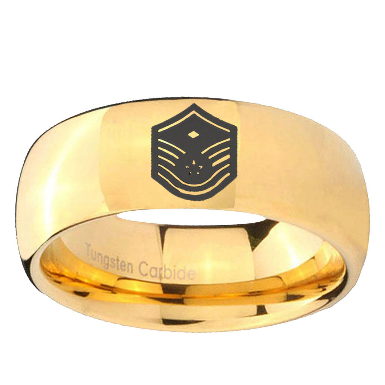 5, 8mm Chief Master Sergeant Vector Dome Gold Tungsten Carbide Rings for Men