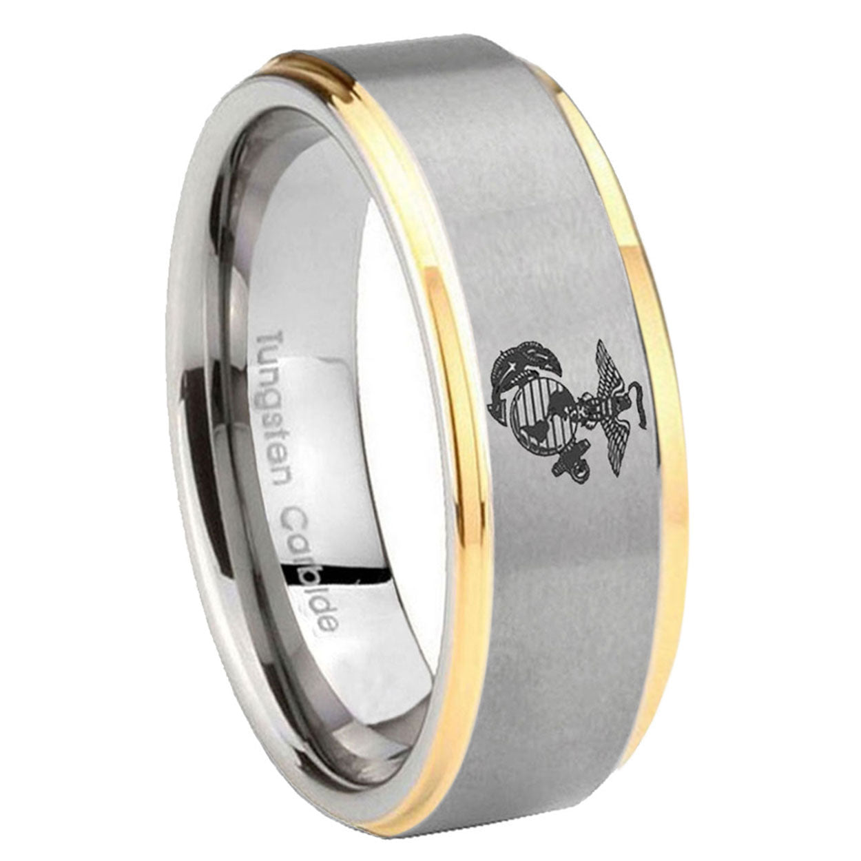 5, 8mm Marine Step Edges Gold 2 Tone Tungsten Carbide Wedding Bands Ring