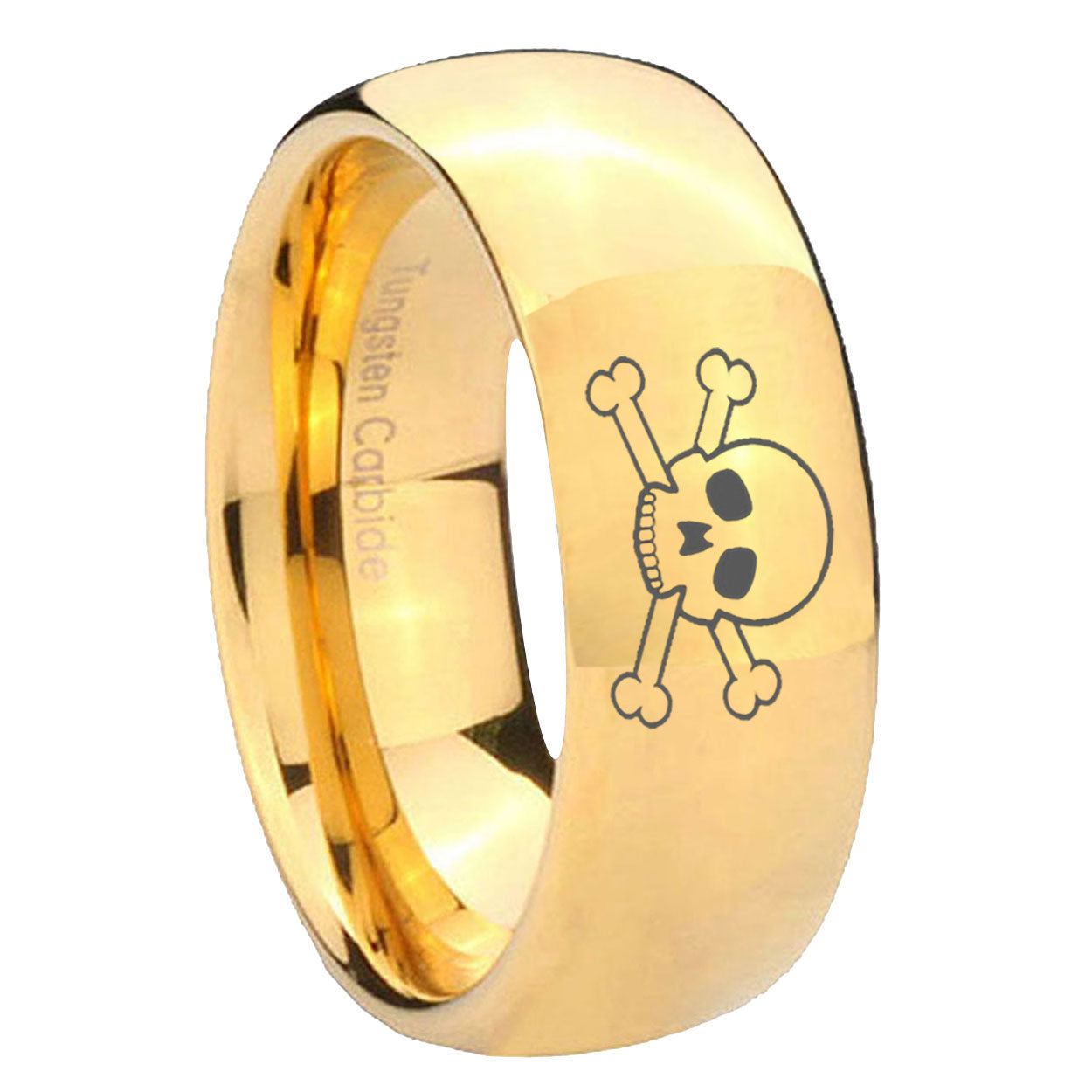 Personalize the 10mm Skull Dome Gold Tungsten Carbide Mens Ring. This gold-finished tungsten ring with Skull design is perfect for custom engravings.