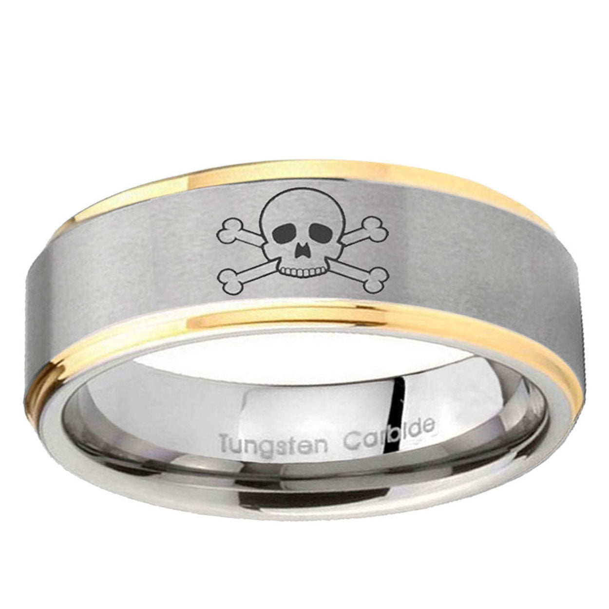 5, 8mm Skull Step Edges Gold 2 Tone Tungsten Carbide Men's Wedding Ring
