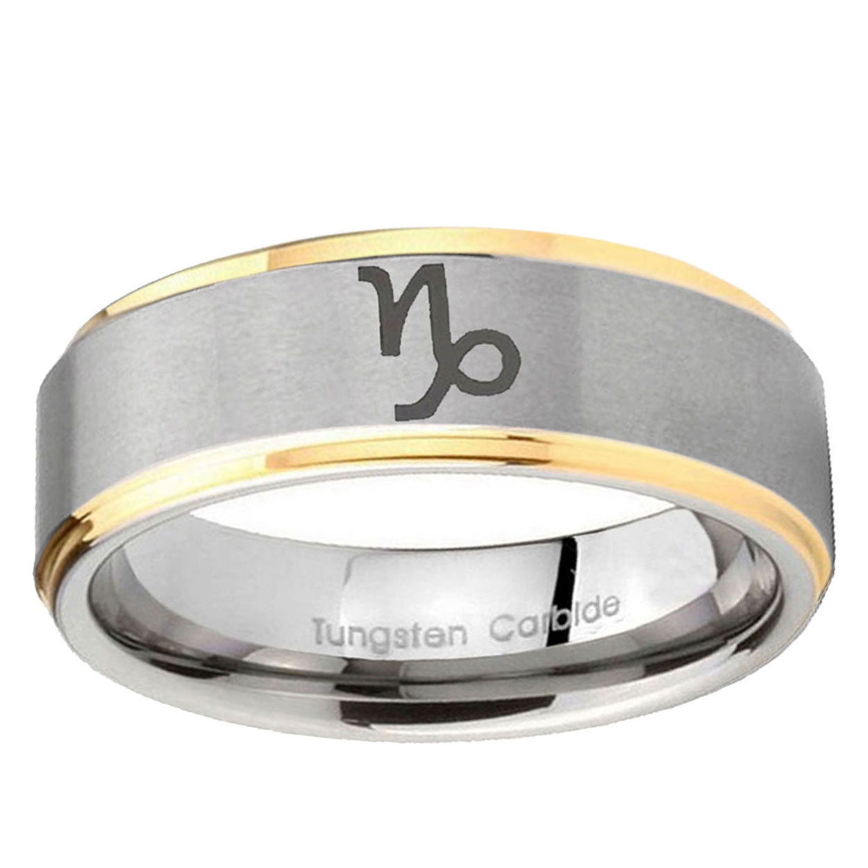 10mm Capricorn Zodiac Step Edges Gold 2 Tone Tungsten Men's Engagement Band
