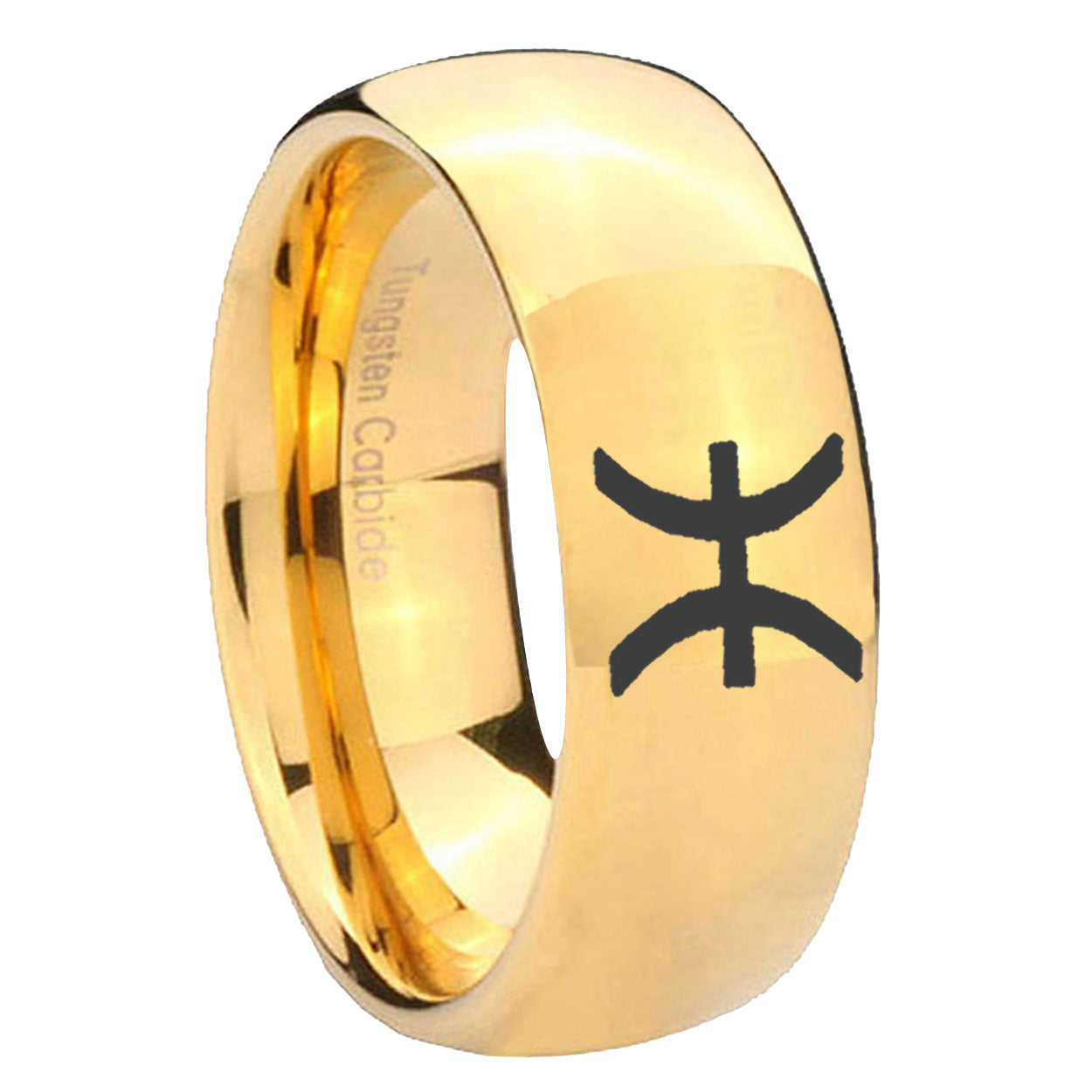Intruding 5, 8mm Pisces Zodiac Dome Gold Tungsten Carbide Wedding Engagement Ring . Offer in both 5mm and 8mm band width polished 18k gold plated finished from size 4 to 14