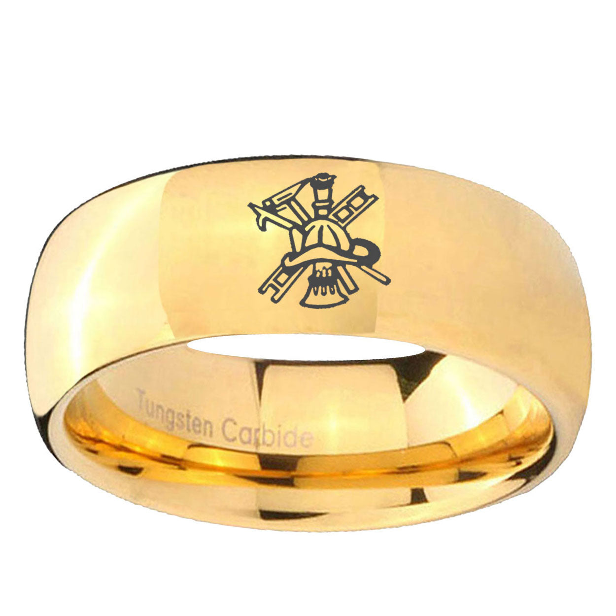 Propose with the 10mm Fireman Dome Gold Tungsten Carbide Men's Engagement Ring. This gold-finished tungsten ring with Fireman design is ideal for engagements.