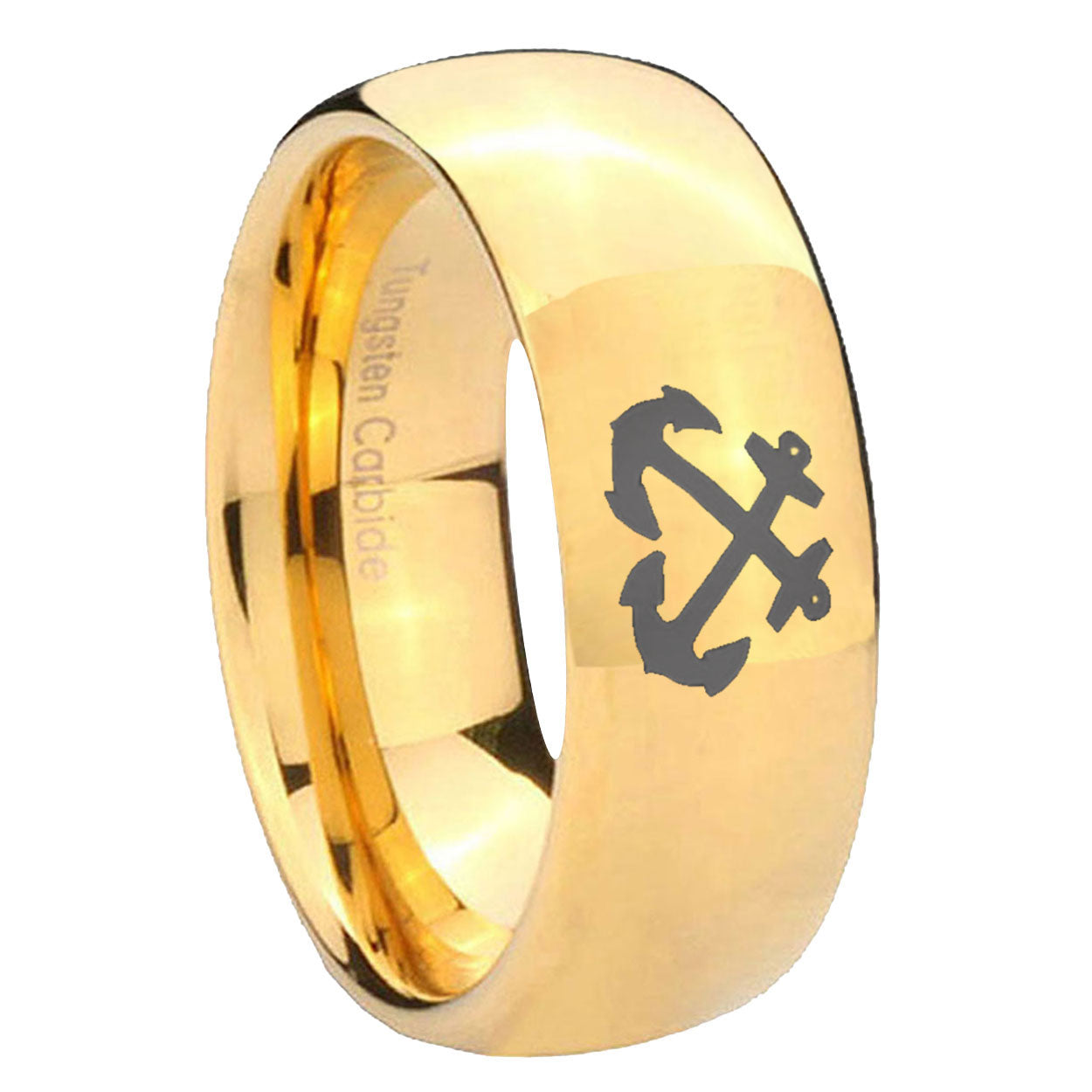 5, 8mm Anchor Dome Gold Tungsten Carbide Men's Promise Rings