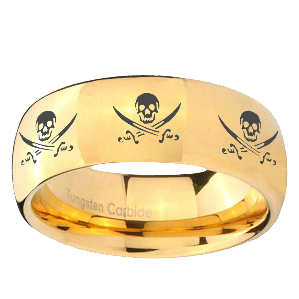 5, 8mm Multiple Skull Pirate Dome Gold Tungsten Carbide Engraved Ring
