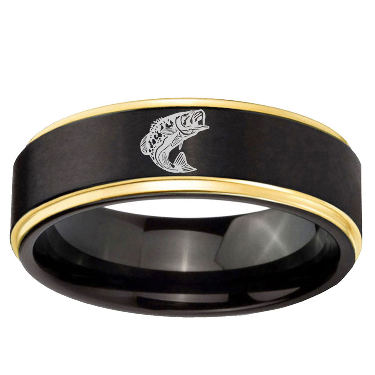 Make a promise with the 10mm Fishing Gold Step Edges Brushed Tungsten Carbide Mens Promise Ring. This gold and brushed tungsten ring with Fishing design is ideal for commitments.