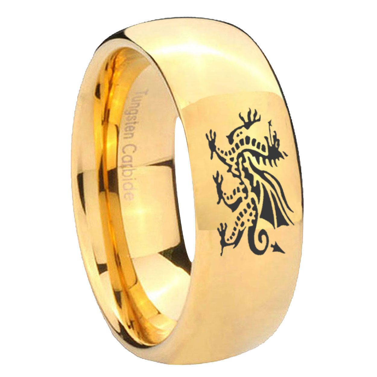 5, 8mm Dragon Dome Gold Tungsten Carbide Mens Promise Ring