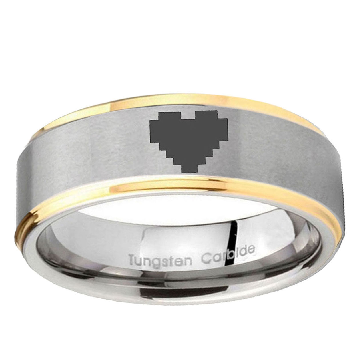 Style the 10mm Step Edges Zelda Heart 14K Gold IP Tungsten Two Tone Men's Ring. This gold and two-tone tungsten ring with Zelda Heart design is perfect for men.