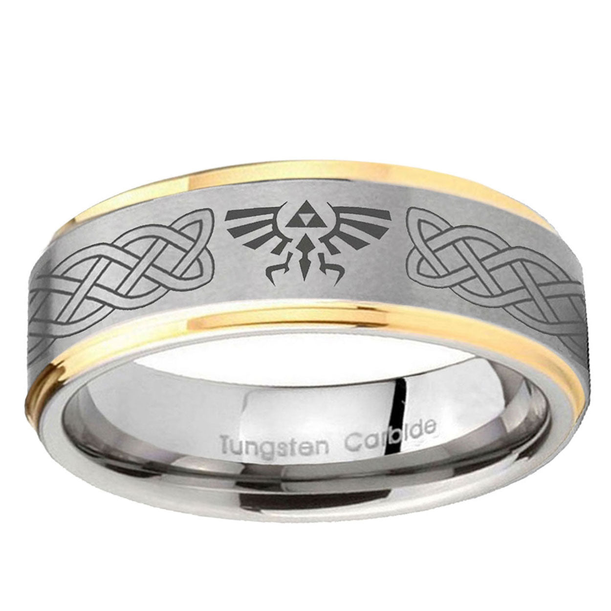 10mm Celtic Zelda Step Edges Gold 2 Tone Tungsten Carbide Men's Wedding Ring