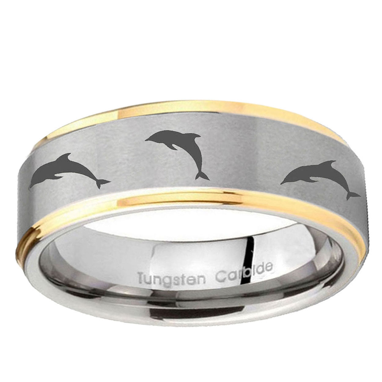 5, 8mm Dolphins Step Edges Gold 2 Tone Tungsten Carbide Custom Ring for Men
