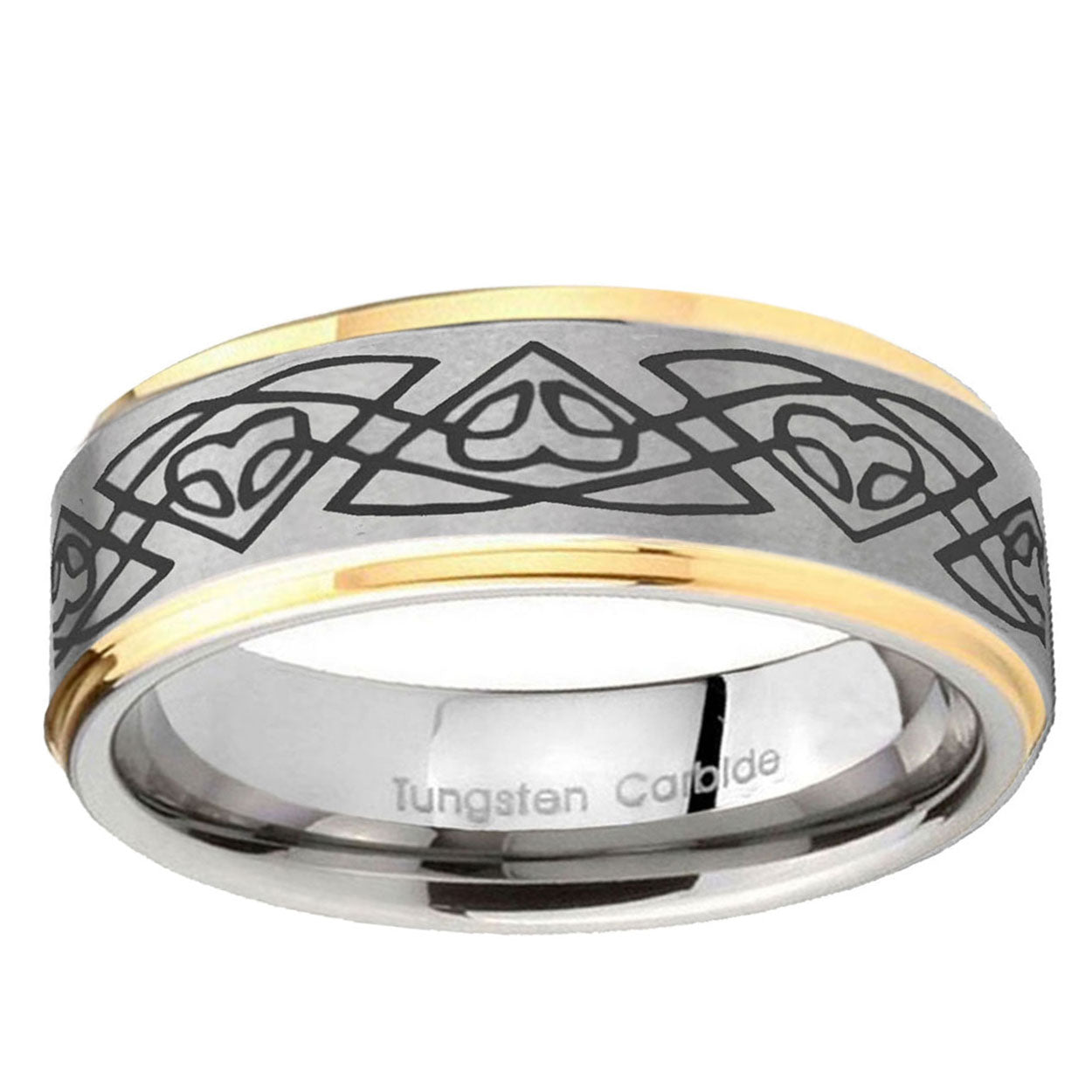 5, 8mm Celtic Braided Step Edges Gold 2 Tone Tungsten Carbide Custom Mens Ring