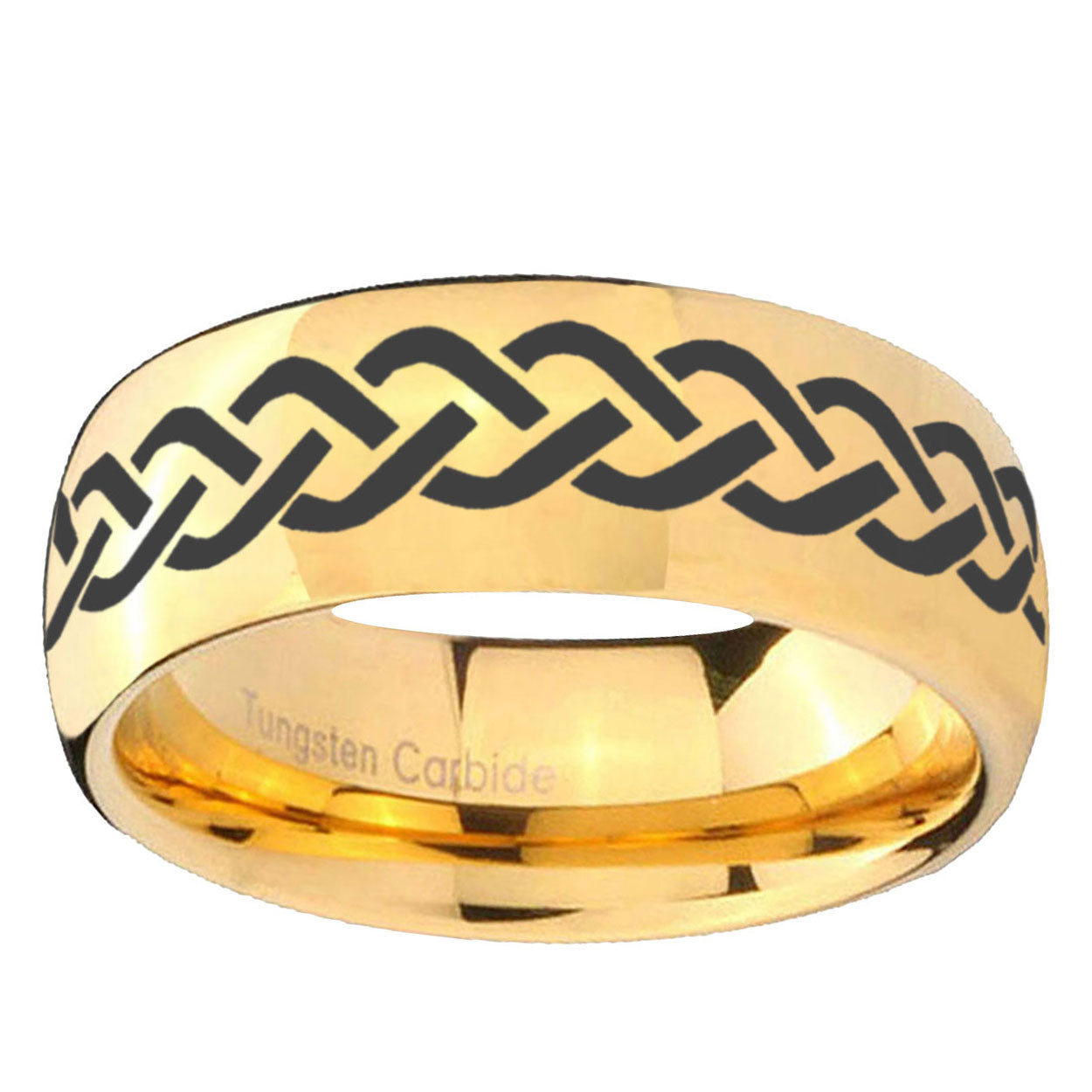 5, 8mm Laser Celtic Knot Dome Gold Tungsten Carbide Wedding Engagement Ring