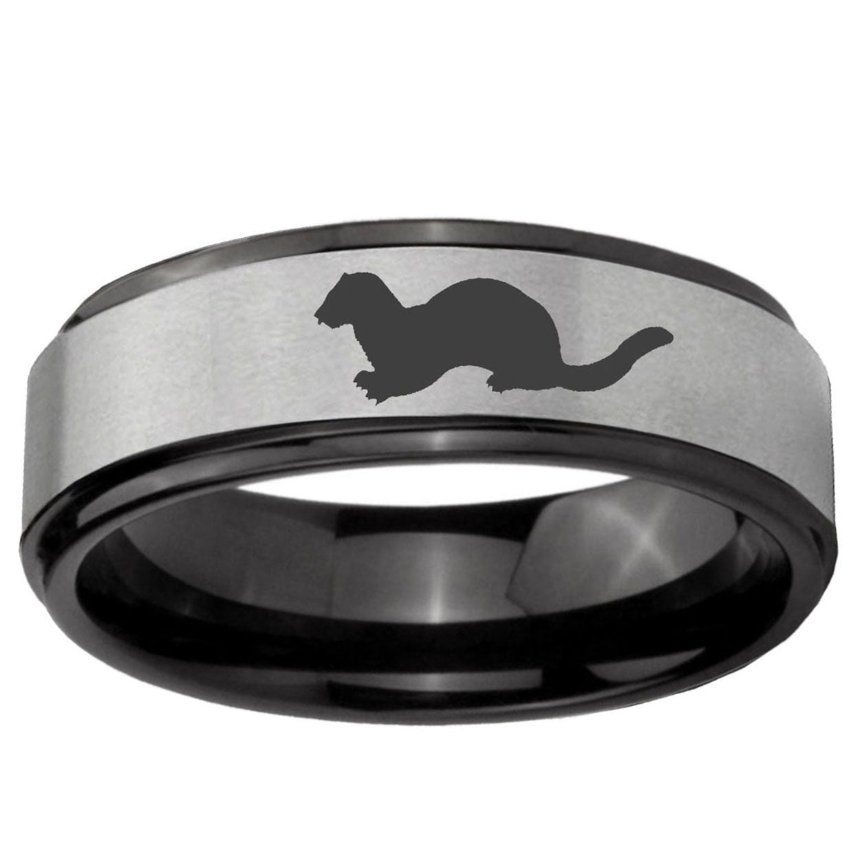 6, 8mm Otter Black Step Edge Gray Tungsten Carbide Men's Wedding Ring