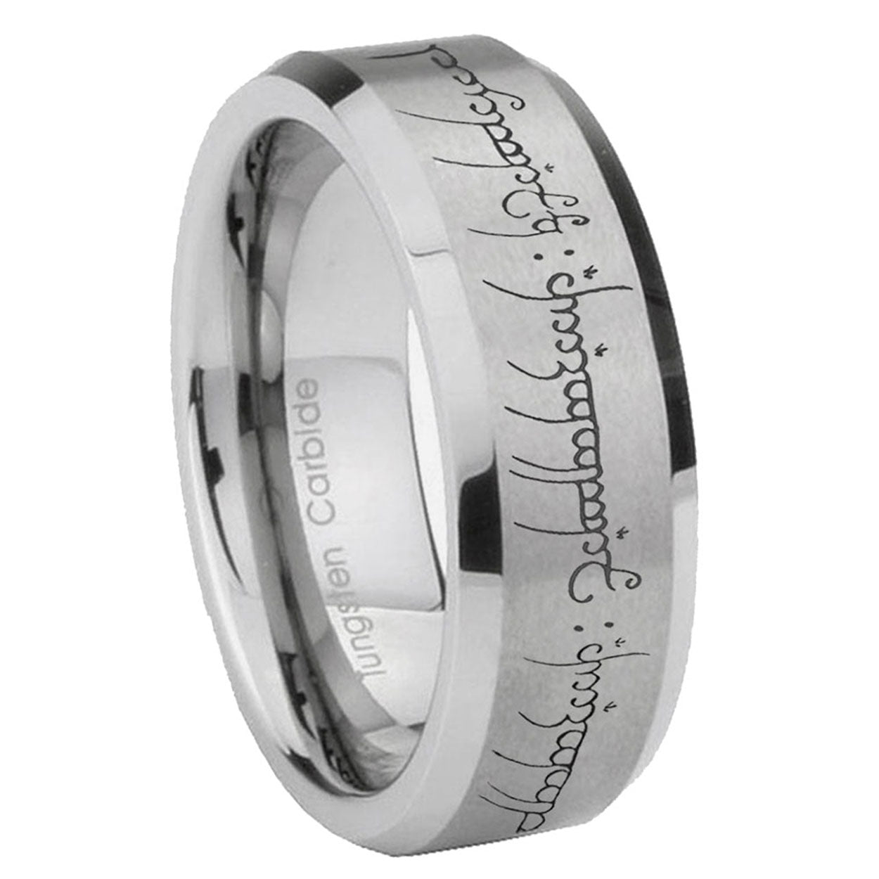 Intruding 6, 8mm Lord Of The Rings Beveled Edge Brushed Silver Women's Wedding Rings Silver . Offer in both 5mm and 8mm band width brushed grey finished from size 4 to 14