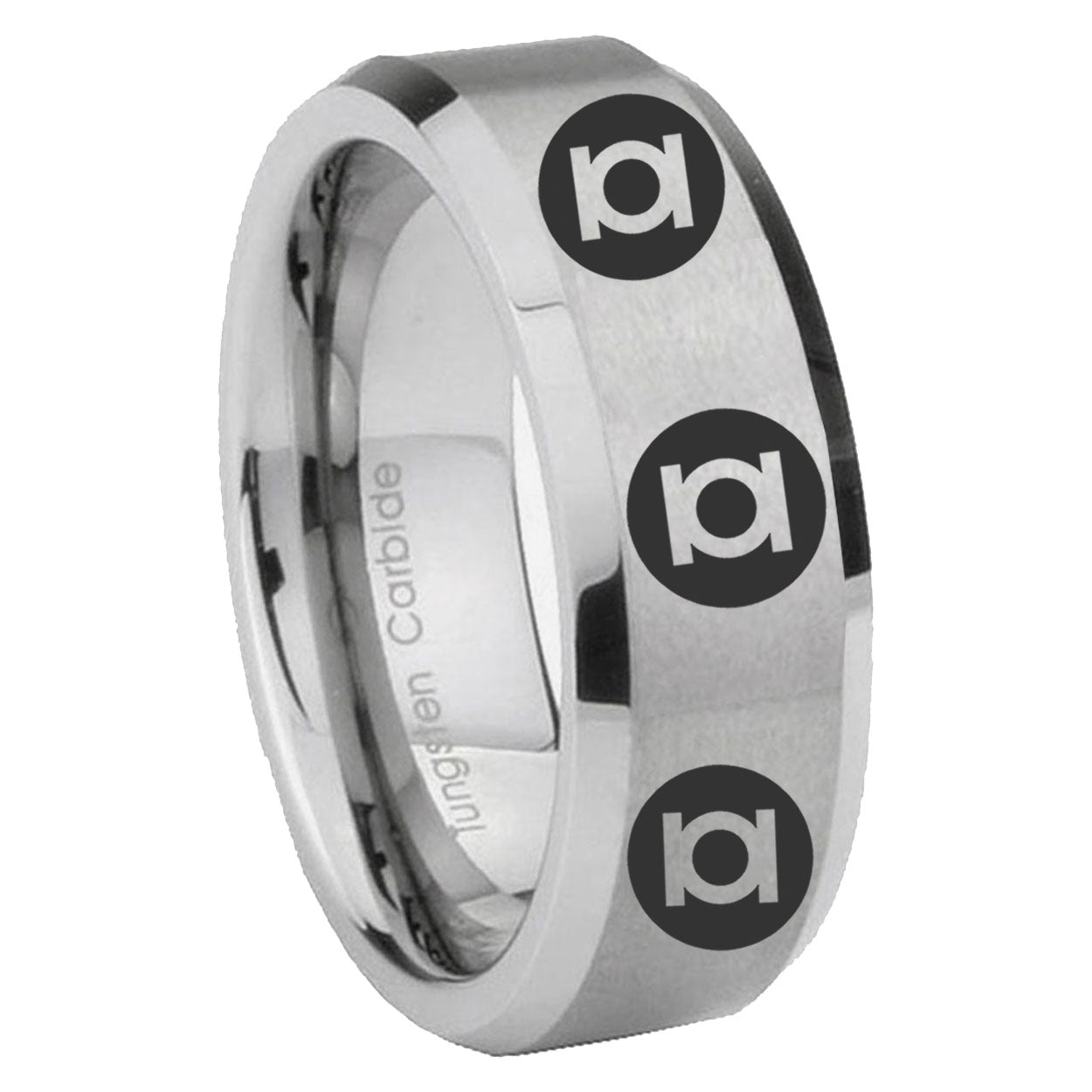 6, 8mm Multiple Green Lantern Beveled Edge Brushed Gray Tungsten Engrave Ring