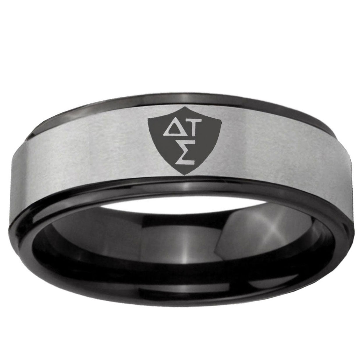 Intruding 6, 8mm Greek CTR Black Step Edge Gray Tungsten Carbide Wedding Band Mens . Offer in both 6mm and 8mm band width black plated finished from size 7 to 14