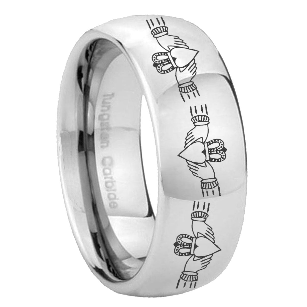 5, 8mm Irish Claddagh Mirror Dome Tungsten Carbide Anniversary Ring