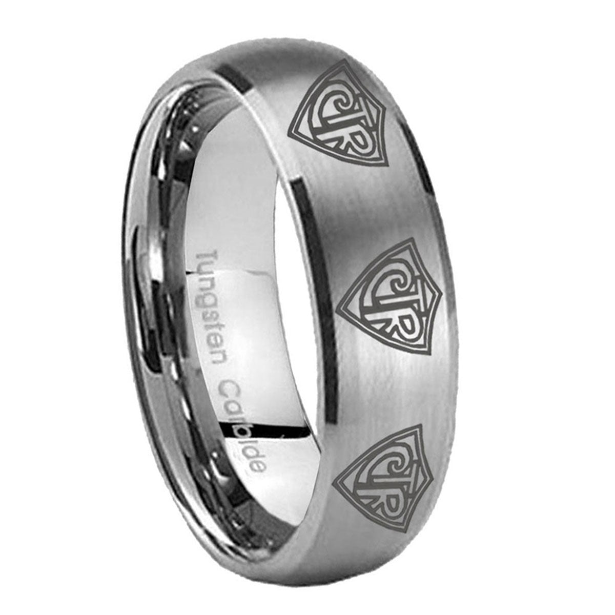 Intruding 5, 8mm Multiple CTR Dome Brushed Tungsten Carbide Mens Wedding Ring . Offer in both 5mm and 8mm band width matte grey finished from size 4 to 14