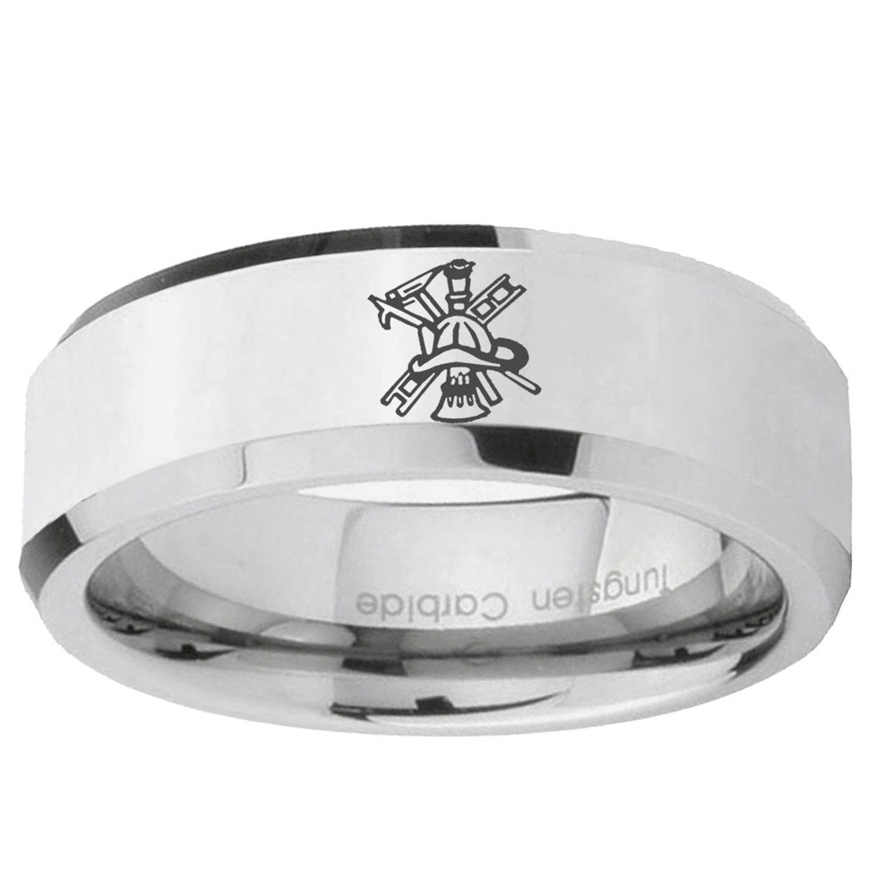Intruding 5, 8mm Fireman Beveled Edges Silver Tungsten Carbide Men's Bands Ring . Offer in both 5mm and 8mm band width polished silver finished from size 4 to 14
