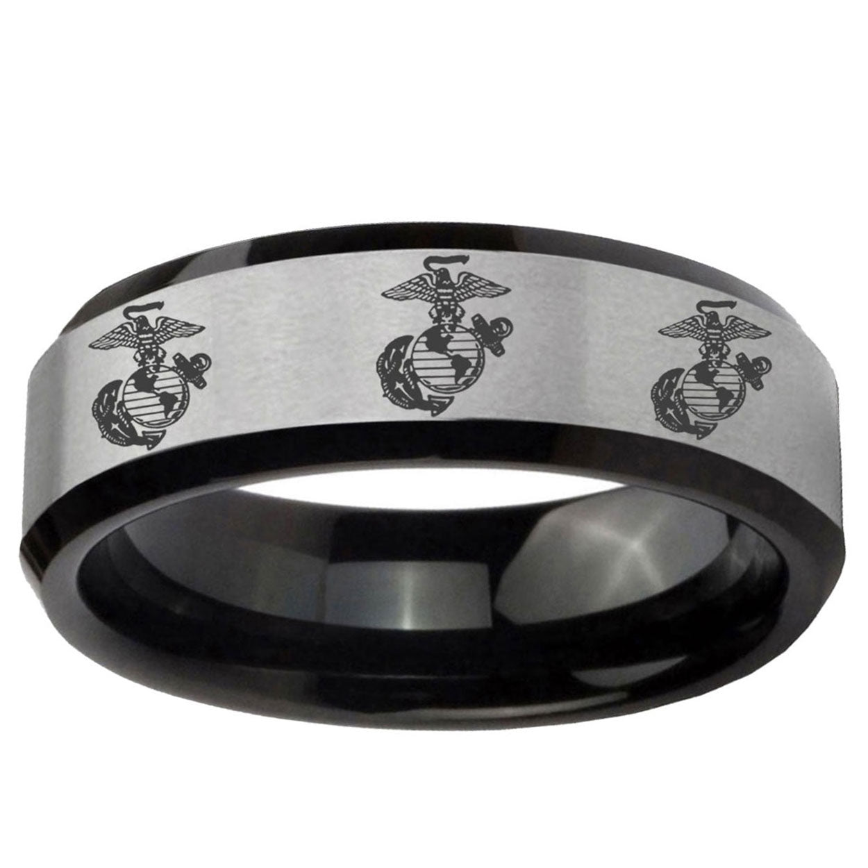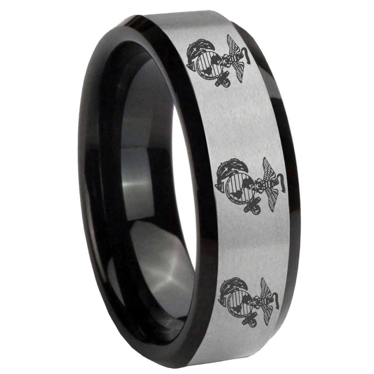 Intruding 5, 8mm Multiple Marine Beveled Brush Black 2 Tone Tungsten Mens Ring Personalized . Offer in both 5mm and 8mm band width brush black 2 tone finished from size 4 to 14