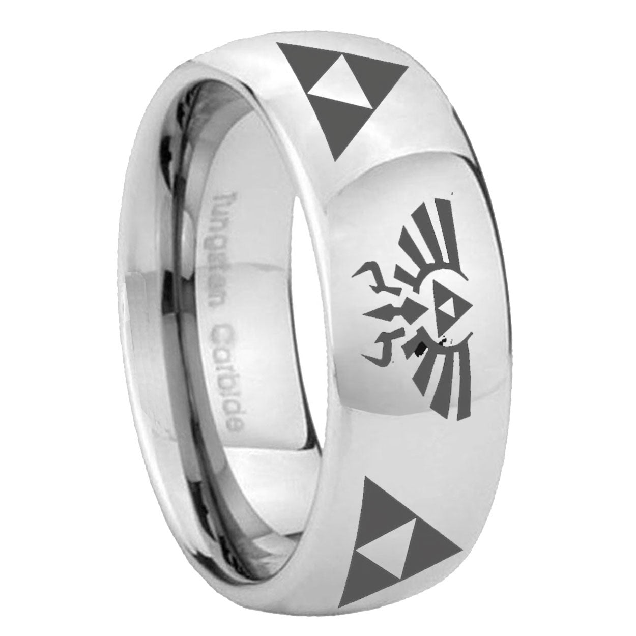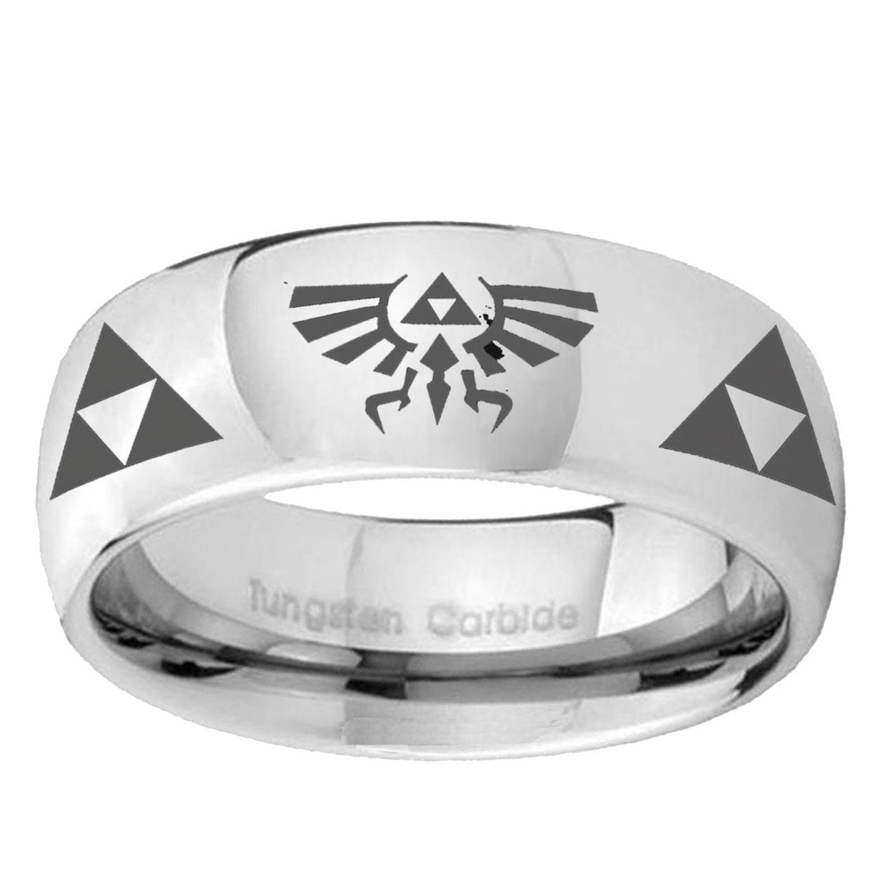 Intruding 5, 8mm Legend of Zelda Mirror Dome Tungsten Carbide Men's Promise Rings . Offer in both 5mm and 8mm band width polished silver finished from size 4 to 14