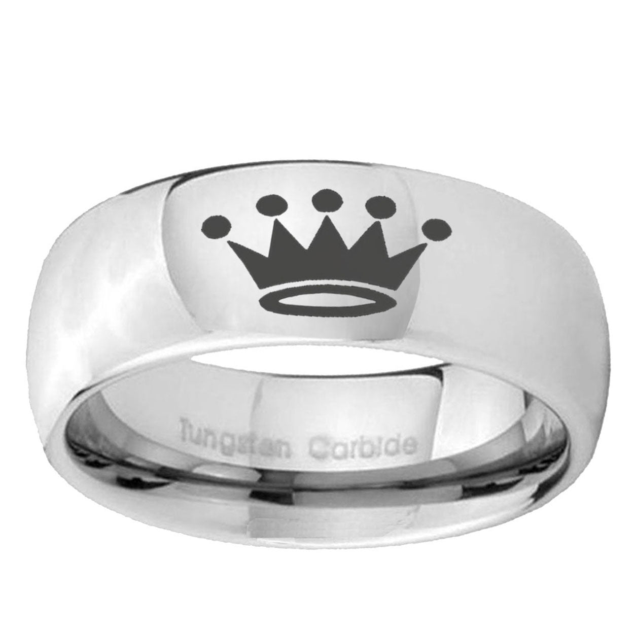 Intruding 5, 8mm Crown Mirror Dome Tungsten Carbide Mens Wedding Ring . Offer in both 5mm and 8mm band width polished silver finished from size 4 to 14